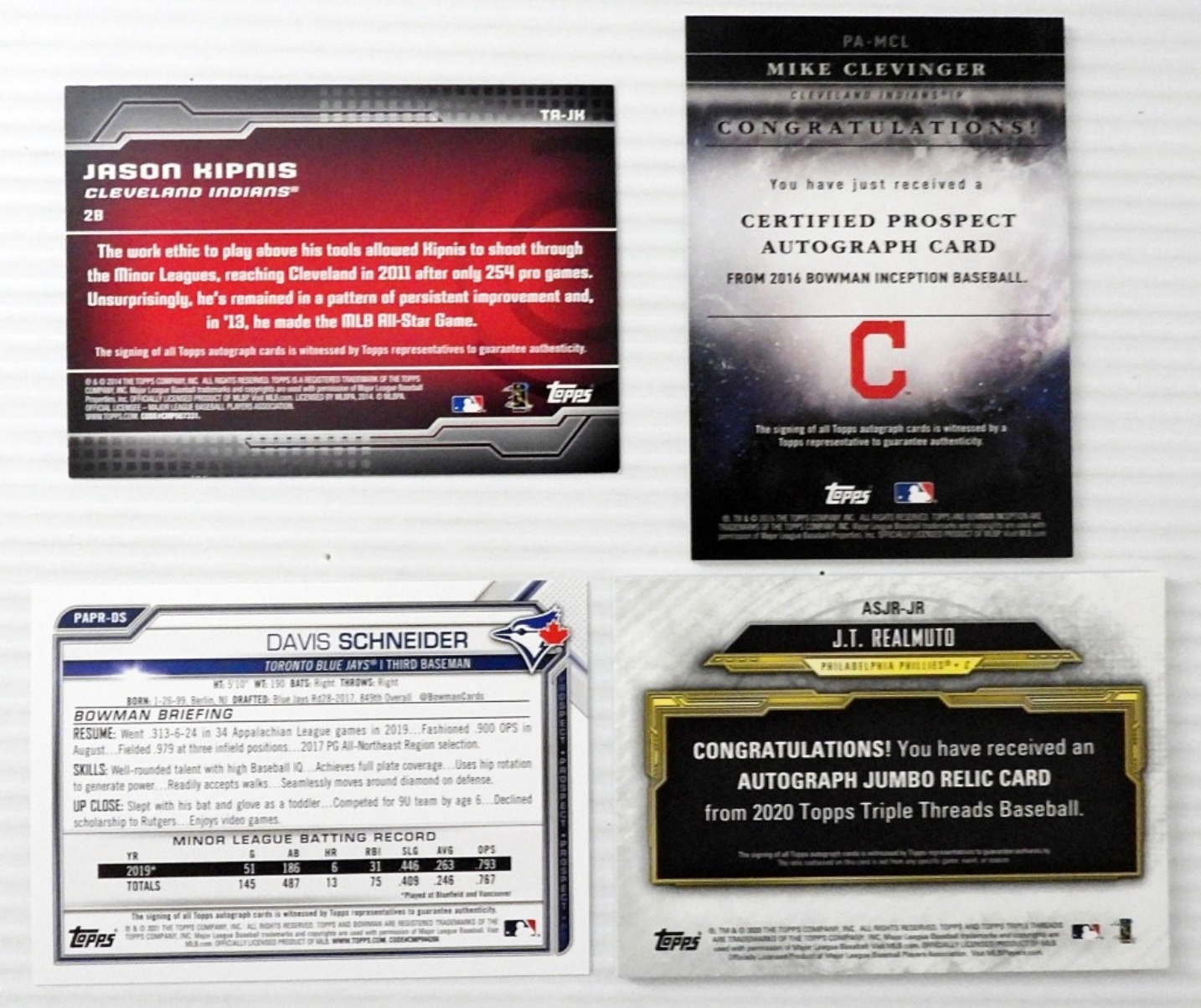 FACTORY ISSUED, SOME LIMITED EDITION, GREAT MIX, J.T. REALMUTO, JASON HIPNIS, DAVIS SCHNEIDER, MIKE CLEVINGER