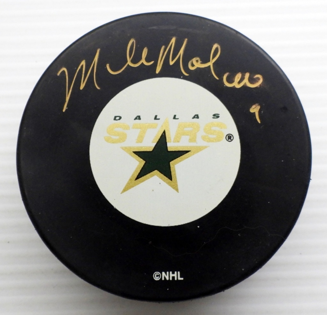 MIKE MODANO AUTOGRAPHED DALLAS STARS OFFICIAL GAME PUCK IN PLASTIC DISPLAY HOLDER – NO COA