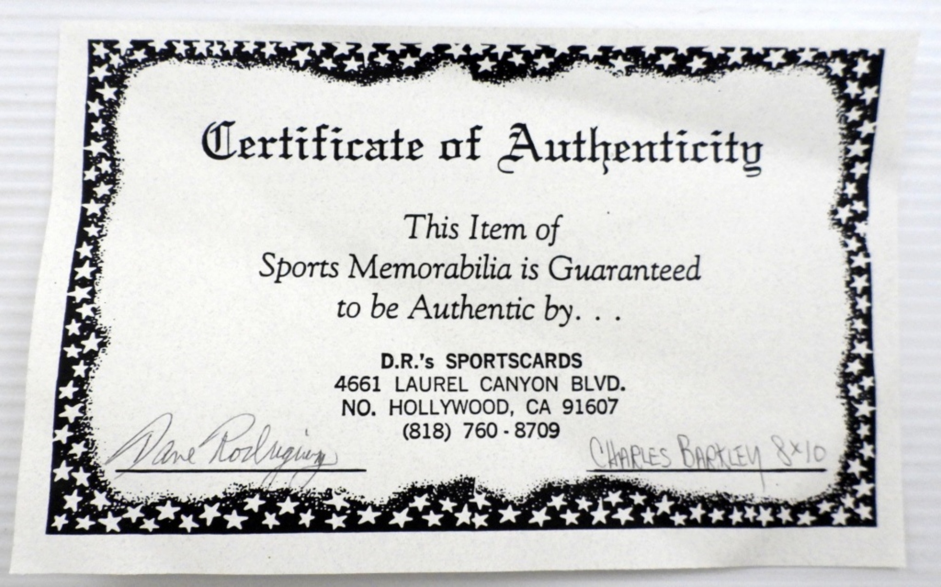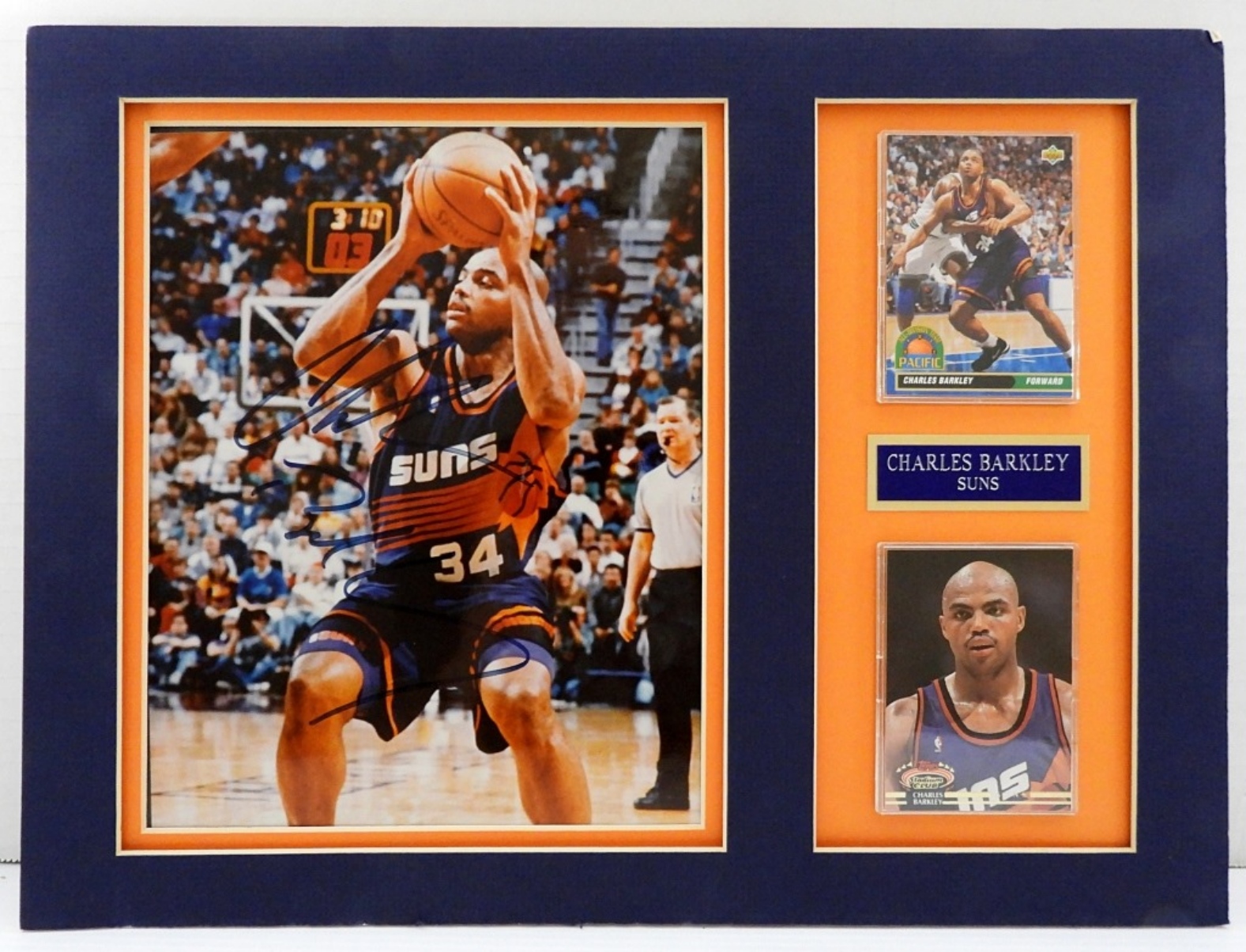 CHARLES BARKLEY PHOENIX SUNS AUTOGRAPHED PICTURE WITH CARDS & NAME PLATE MATTED READY TO BE FRAMED – COA BY D.R.’S SPORTSCARDS