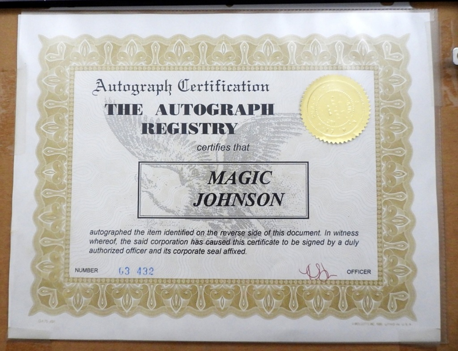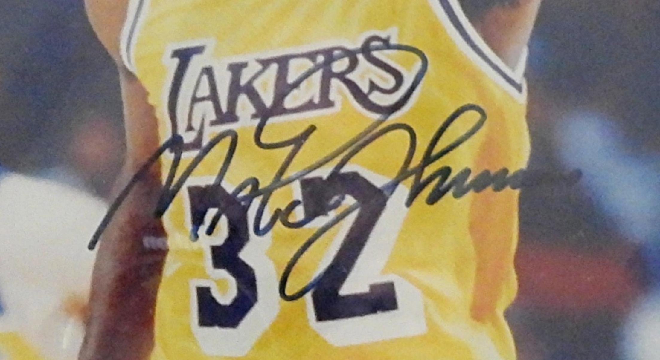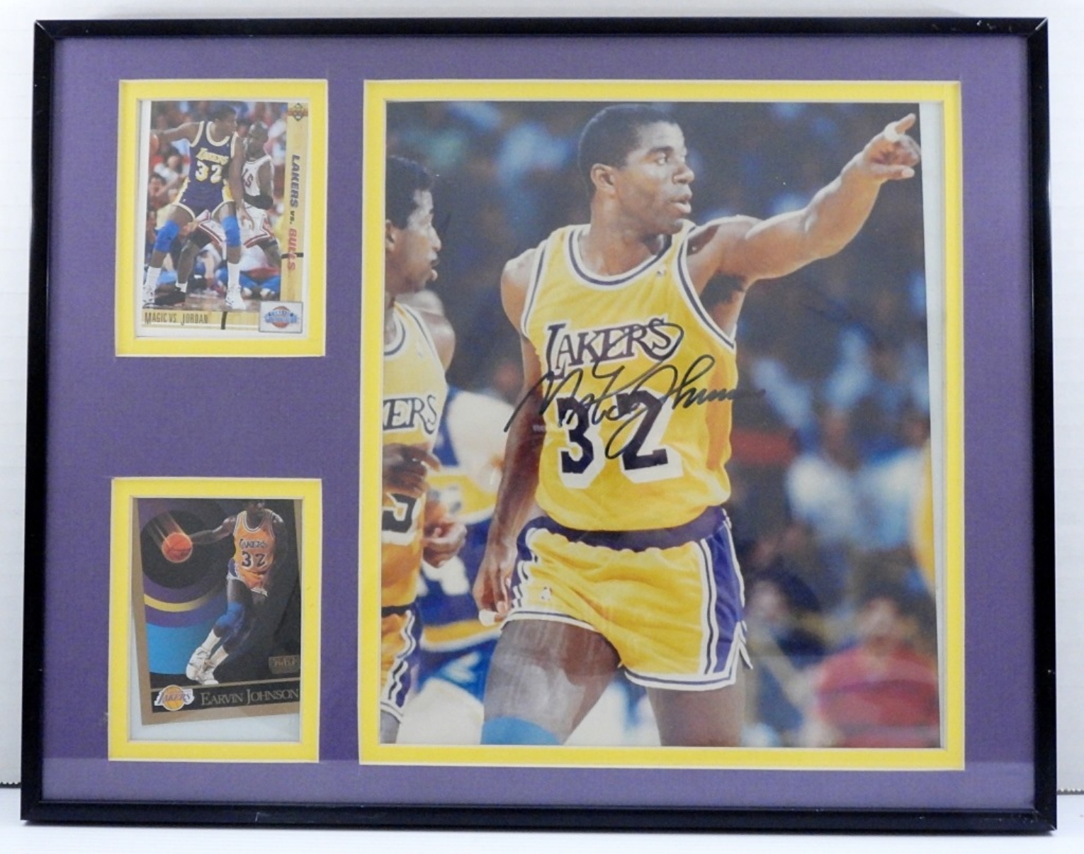 MAGIC JOHNSON LAKERS AUTOGRAPHED FRAMED BASKETBALL PICTURE WITH (2) CARDS – COA BY THE AUTOGRAPH REGISTRY