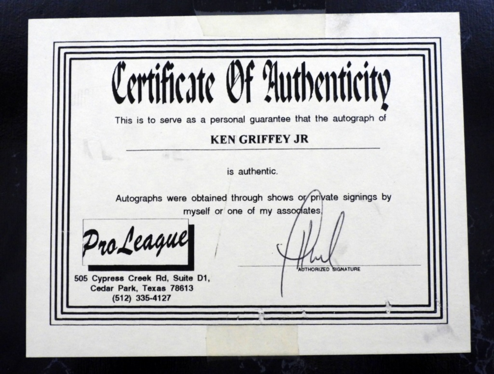 KEN GRIFFEY JR. AUTOGRAPHED BASEBALL PLAQUE WITH NAME PLATE SEATTLE MARINERS – COA BY PRO LEAGUE