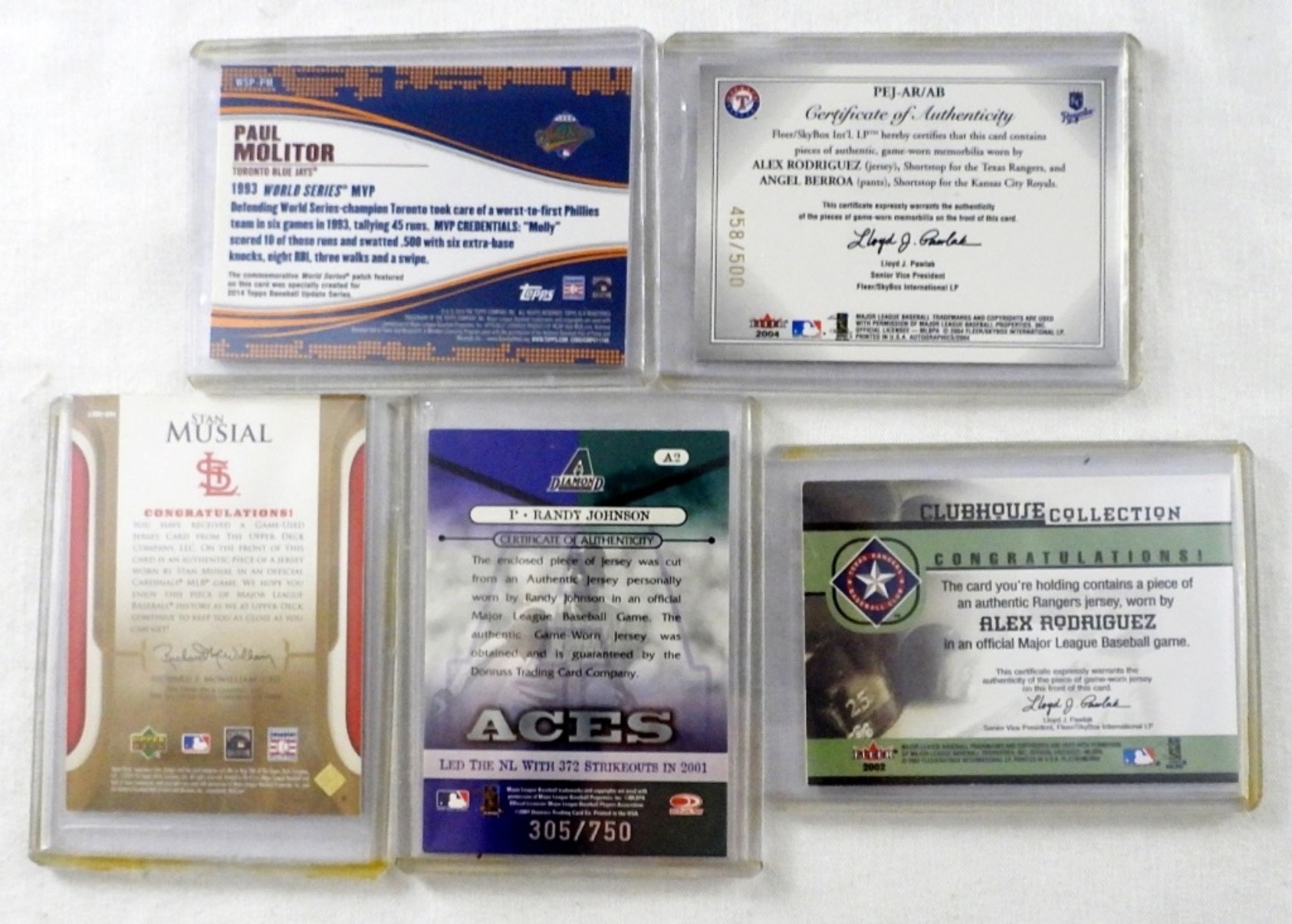 ALEX RODRIGUEZ, RANDY JOHNSON, PAUL MOLITOR, STAN MUSIAL & ANGEL BERROA – ALL VERY NICE CONDITION
