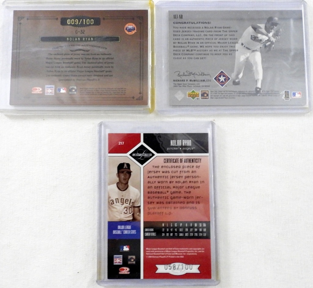 NOLAN RYAN PATCH RELIC CARDS – ALL VERY NICE CONDITION
