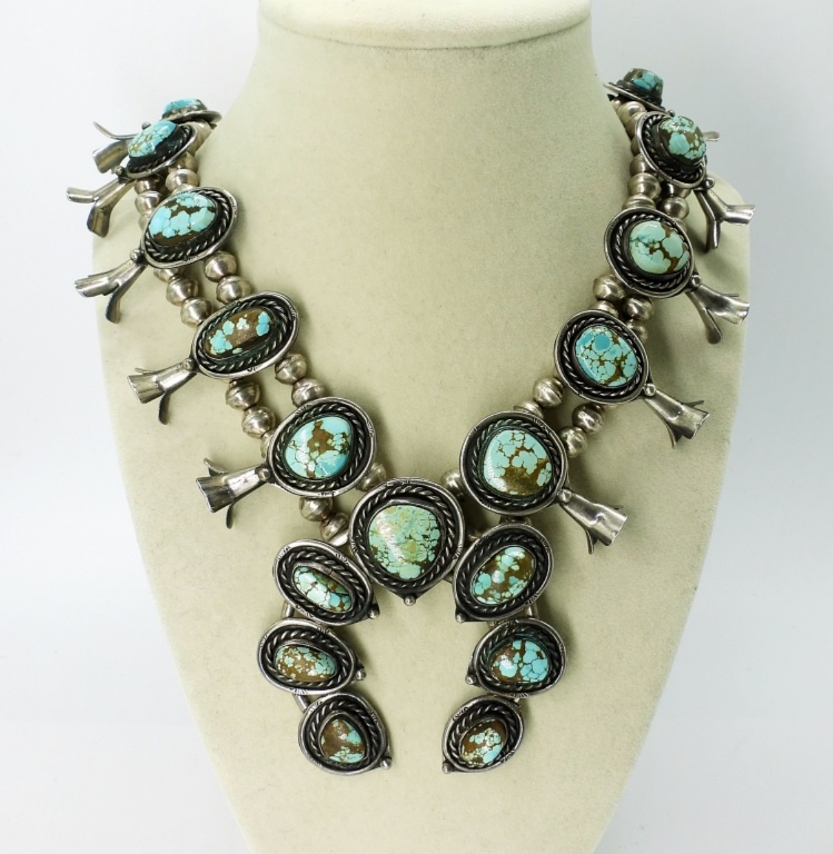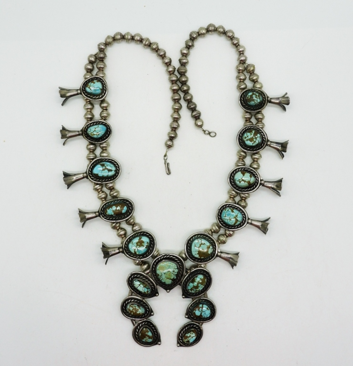 Vintage Sterling Squash Blossom Necklace, 24″. 99.3 DWT