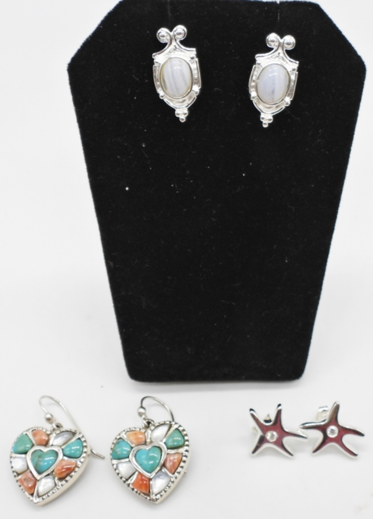 13.7 DWT STERLING PIERCED EARRINGS WITH NATURAL STONES; (2) MARKED 925