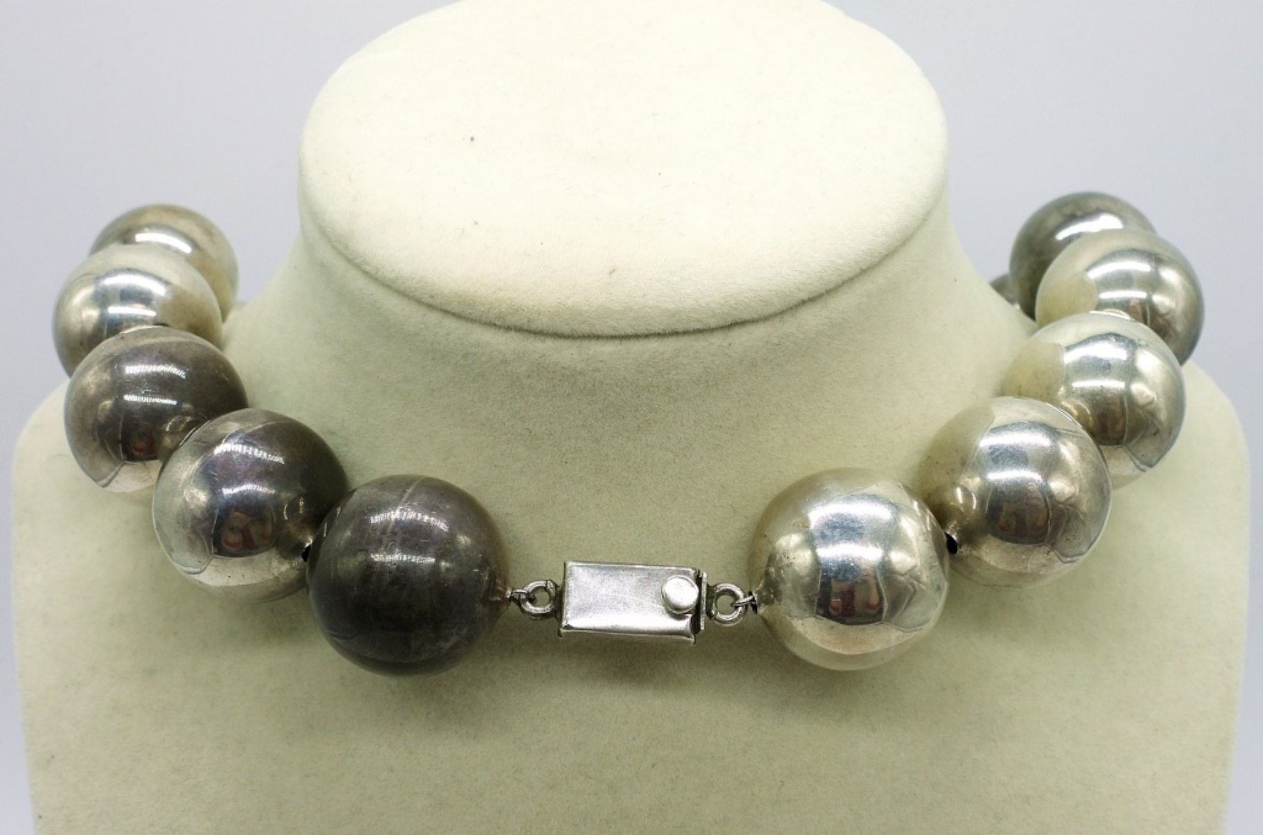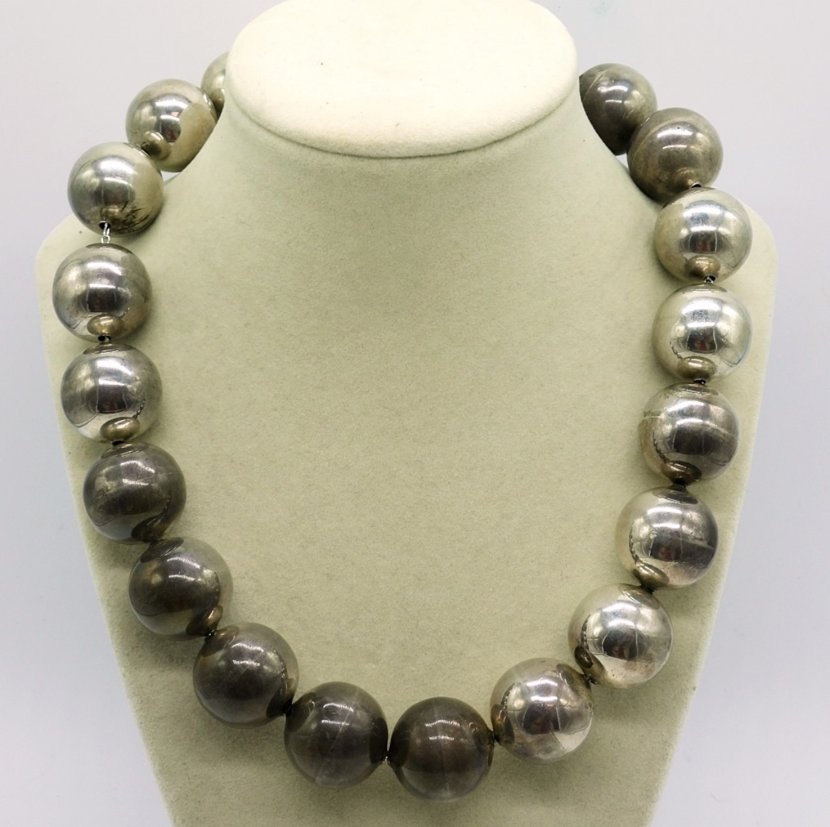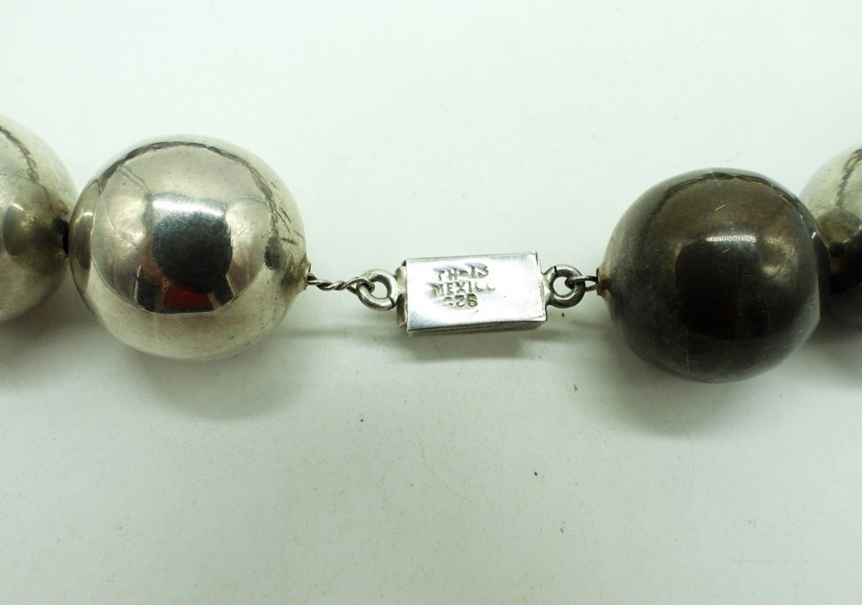 Vintage “Mexico” Sterling Silver Necklace, Large Sterling Ball Beads, 19″. 82.5 DWT