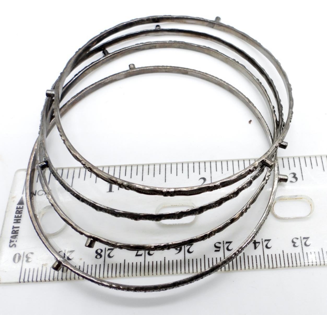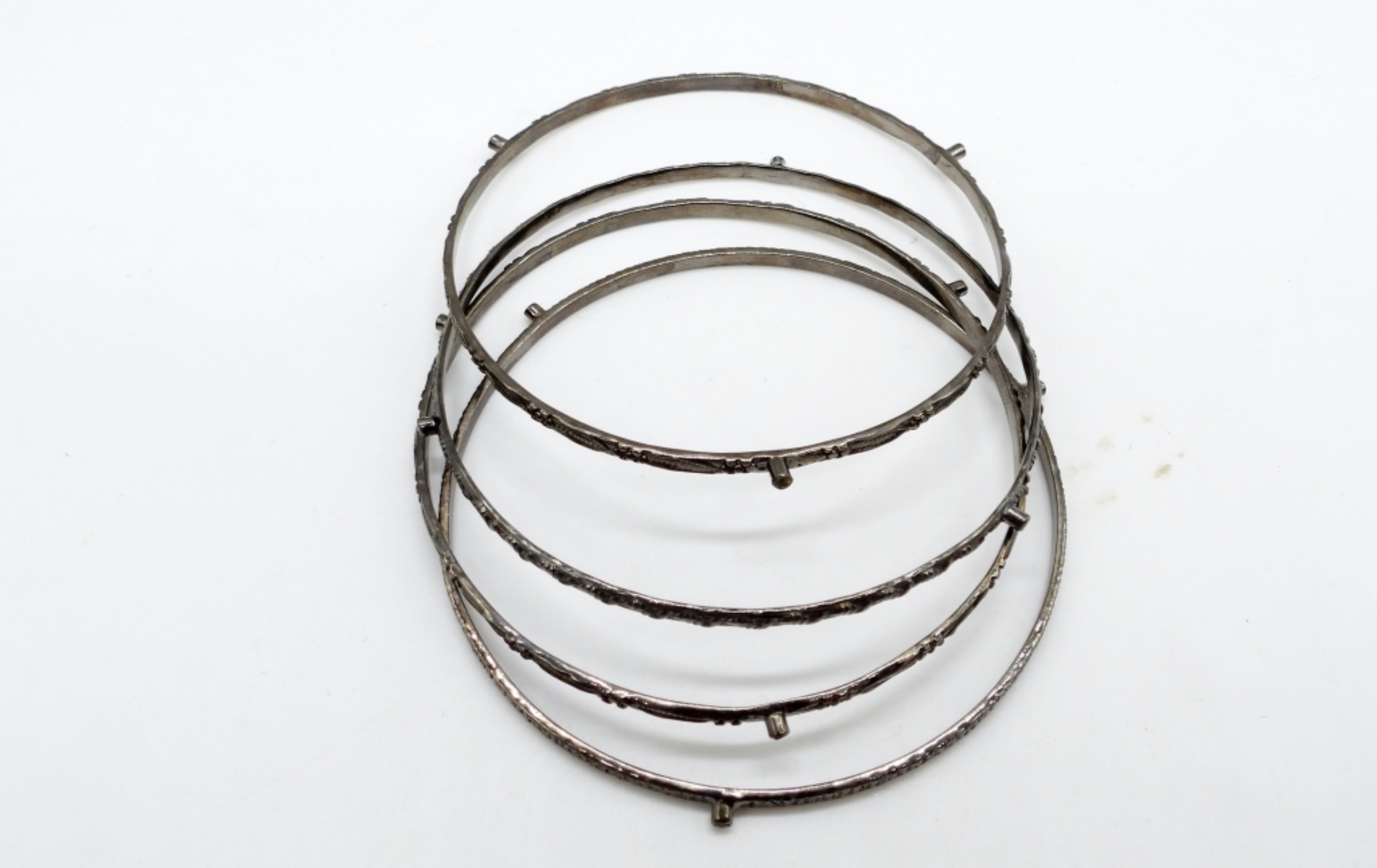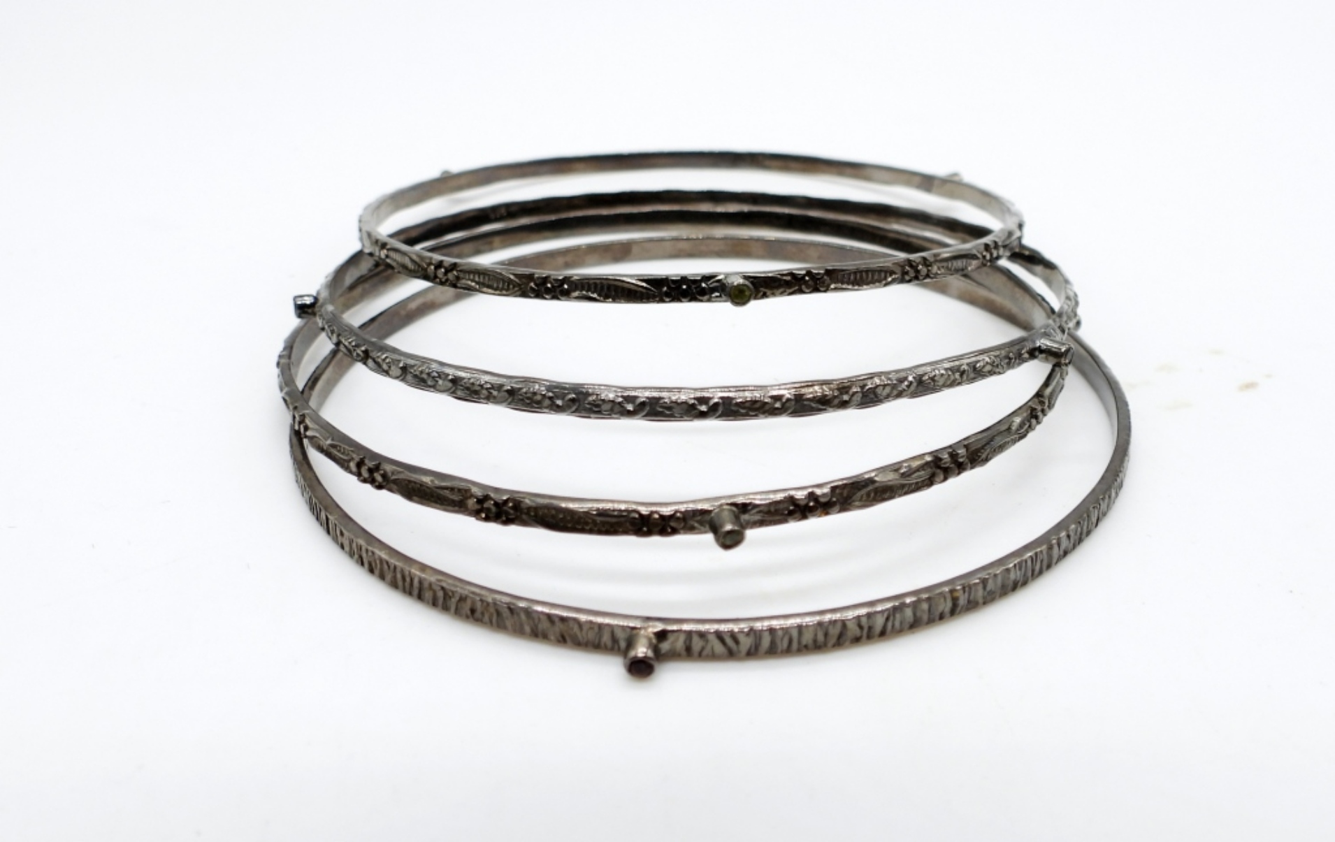 15DWT, 3IN WIDE, EACH BANGLED IS ETCHED DIFFERENT STYLES, EACH HAVE 3 MINI COLOR STONES, ALL STAMPED 925 ON THE INSIDE