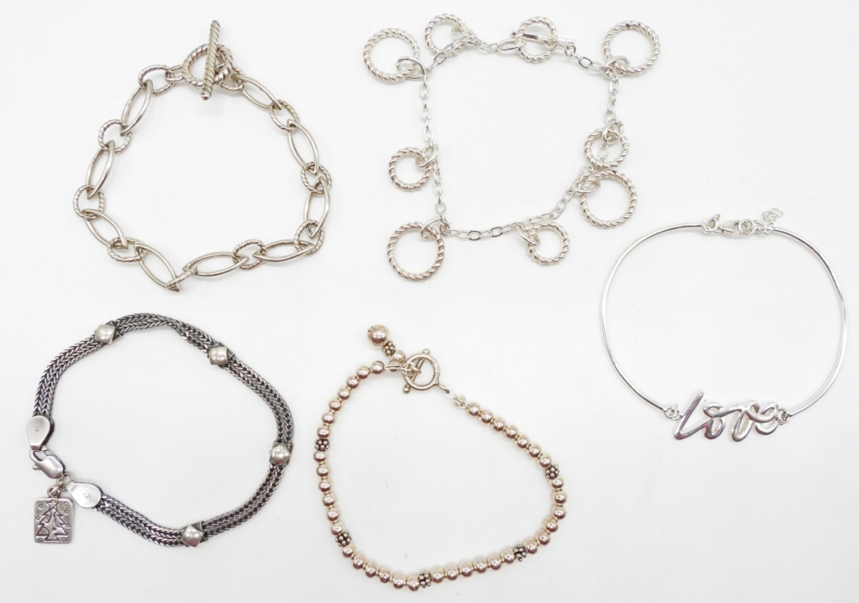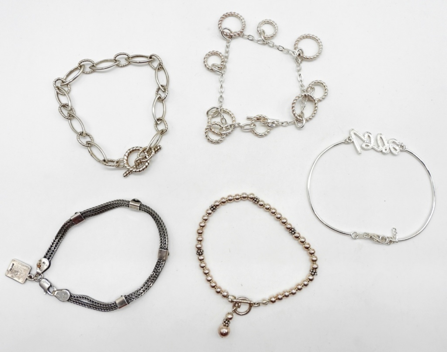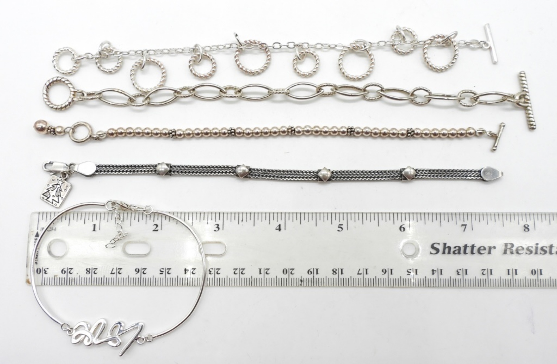 30DWT, 4- BRACELETS ARE BETWEEN 7- 71/2IN LONG, 1 IS 3IN WIDE, ALL STAMPED 925