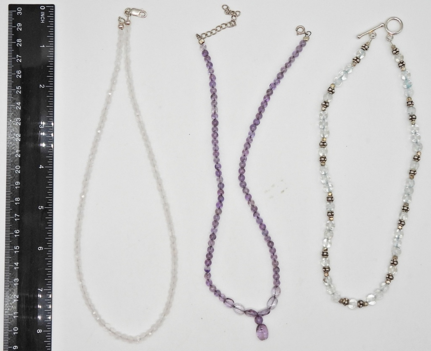 (1) 16 INCH STERLING BEADED CHOKER; (2) 18 INCH STERLING BEADED CHOKERS; MARKED 925