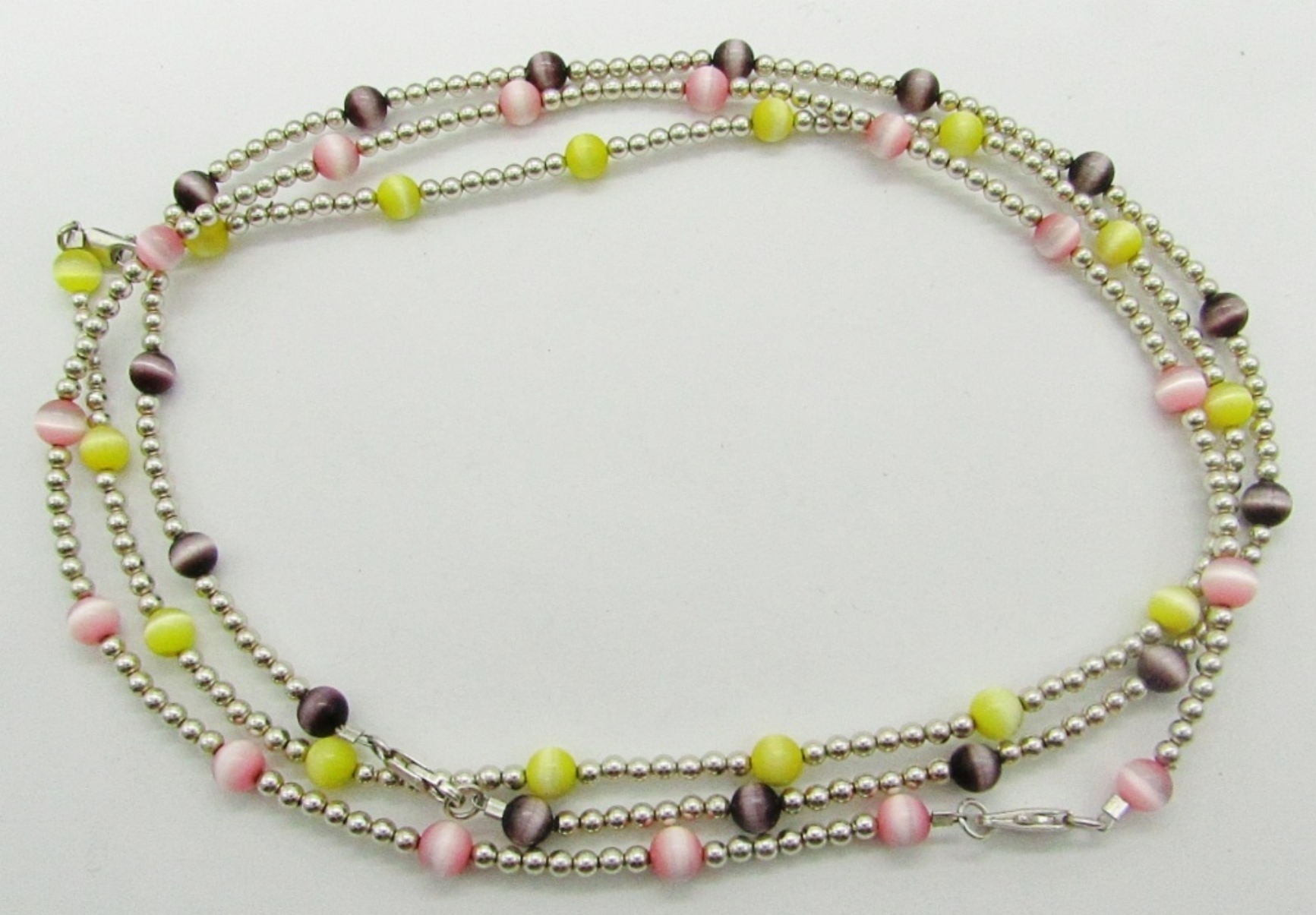 Pink, Purple, and Yellow Beaded Necklaces With Sterling Silver Beads; Marked 925; 20 dwt.