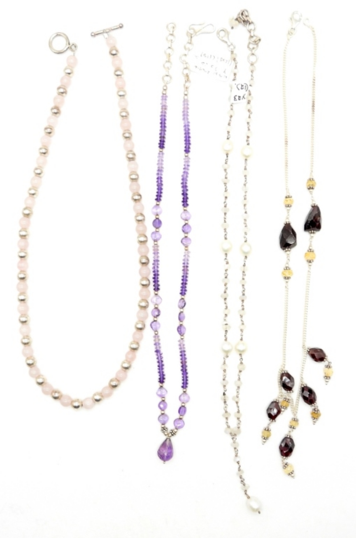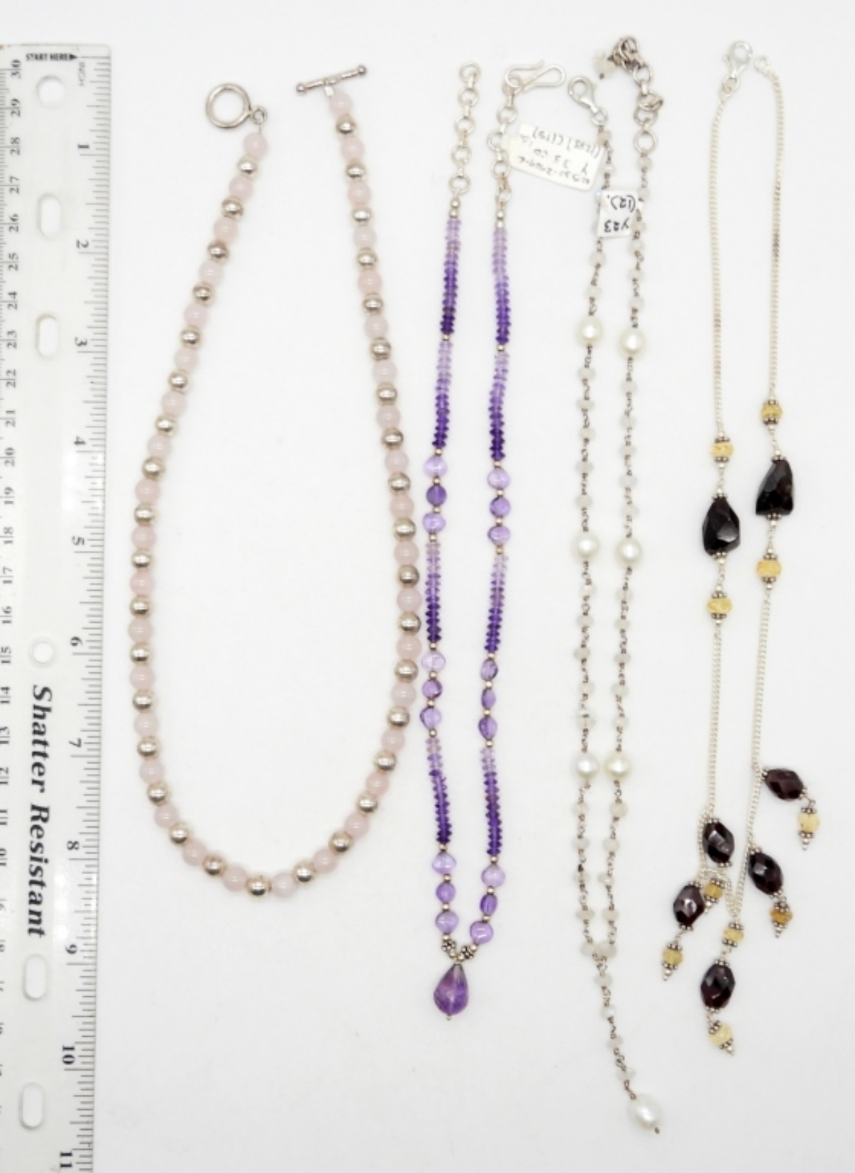 17 INCH STERLING SILVER & MULTI COLOR NATURAL STONE NECKLACES – MARKED 925