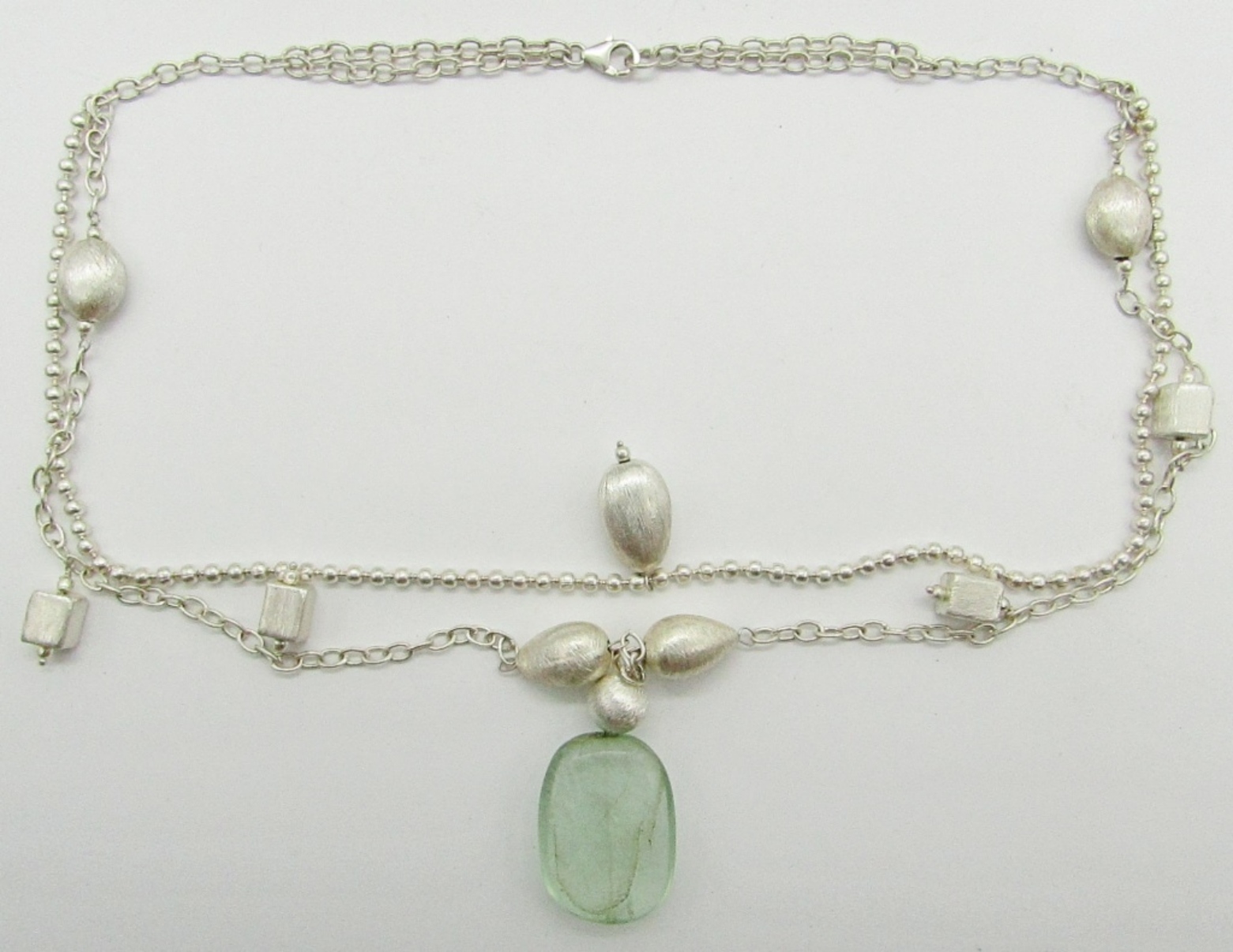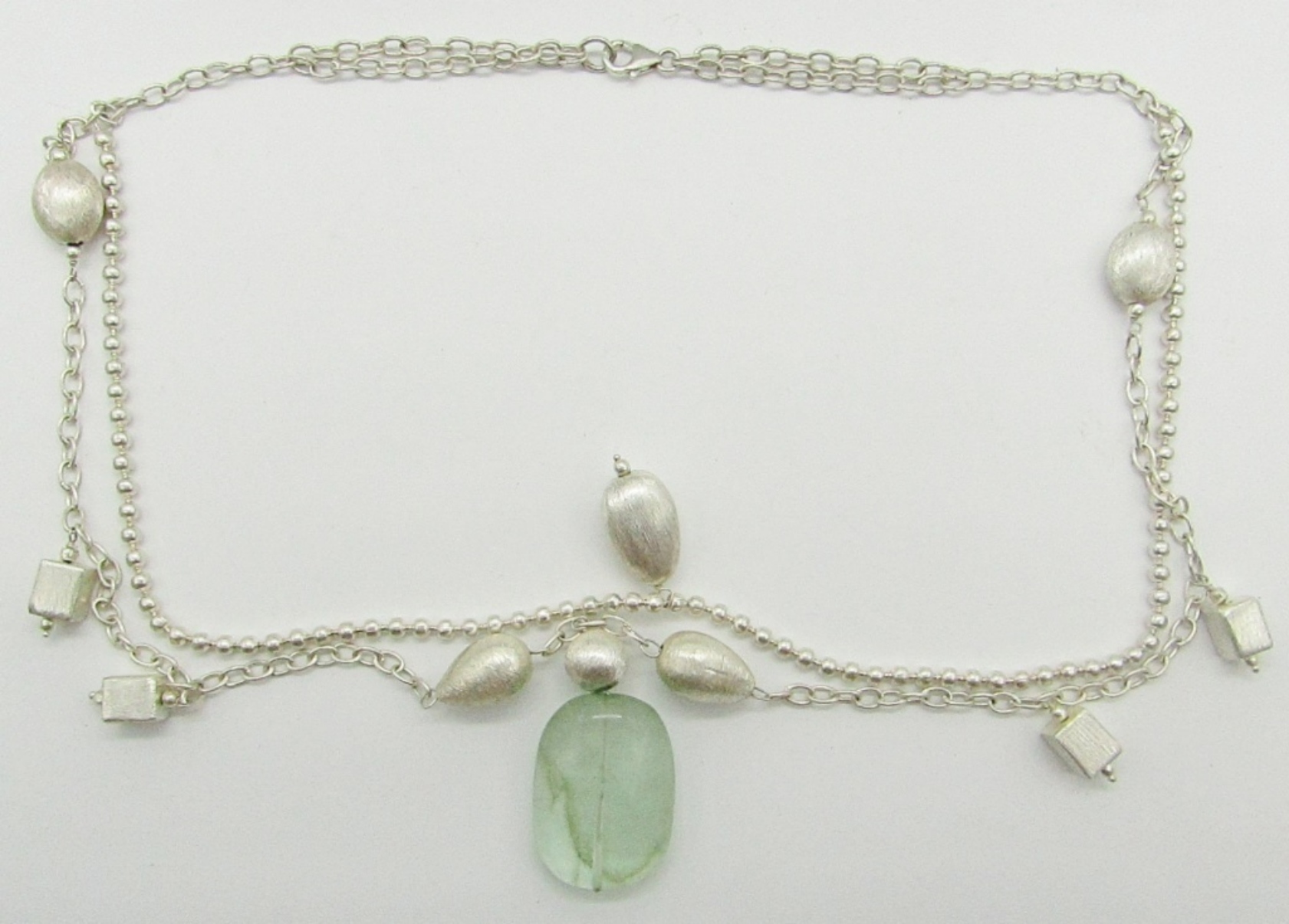 20″ Prehnite Stone & Sterling Necklace; Marked 925. 24dwt.