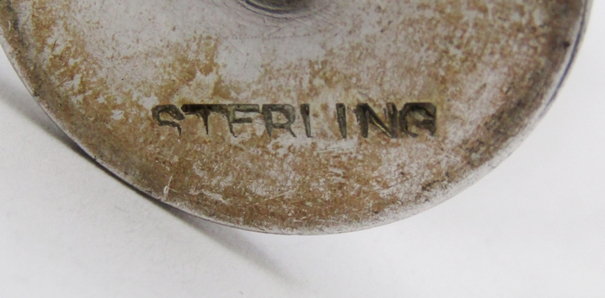 24 DWT. PILL BOX STAMPED 925, LITTLE MISS MUFFET BELL & “JC” TROPHY BOTH STAMPED STERLING.