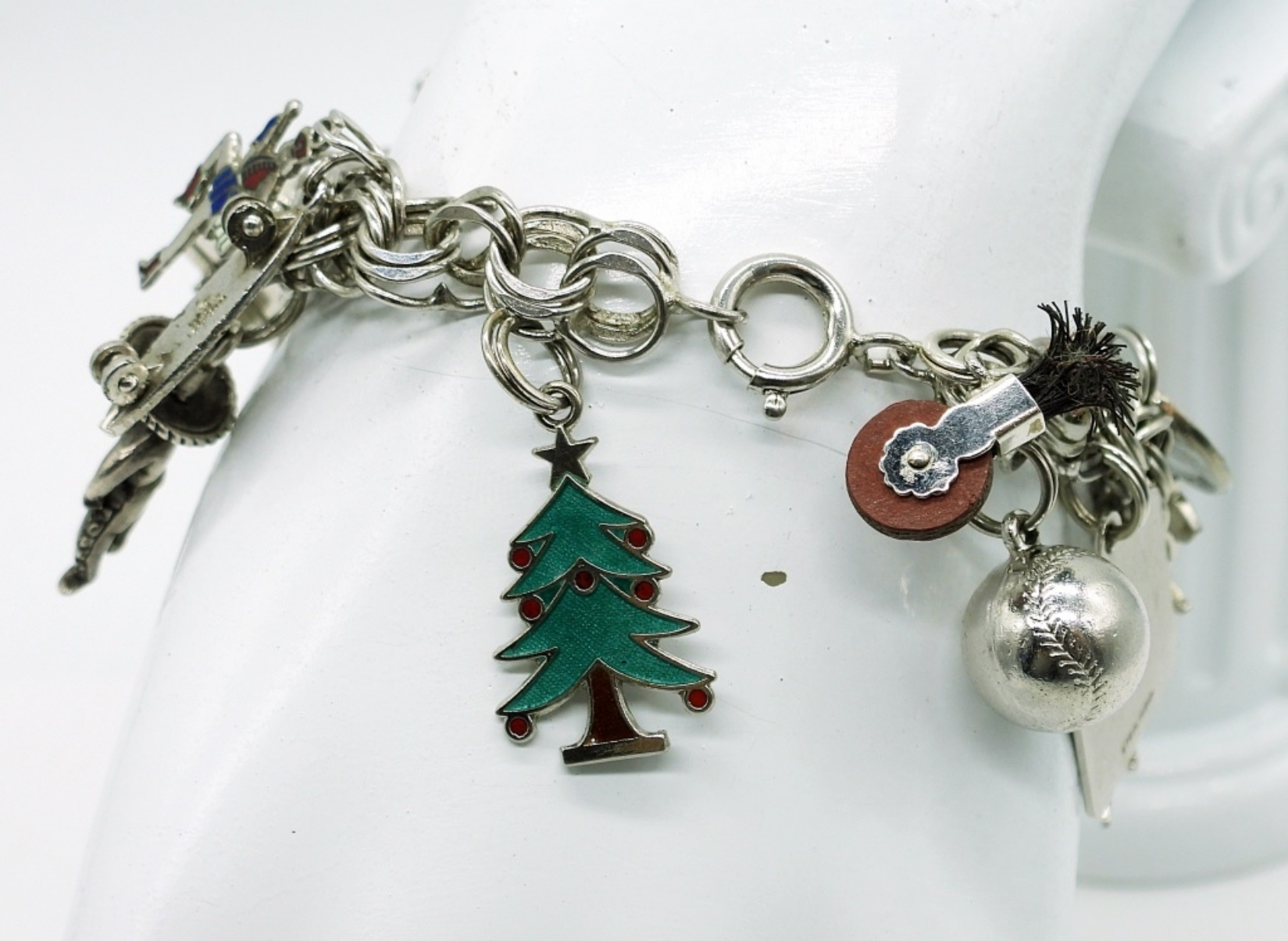 Vintage Sterling Silver Charm Bracelet with 19 Charms. Circa 1960’s. 6″. 32.2 DWT