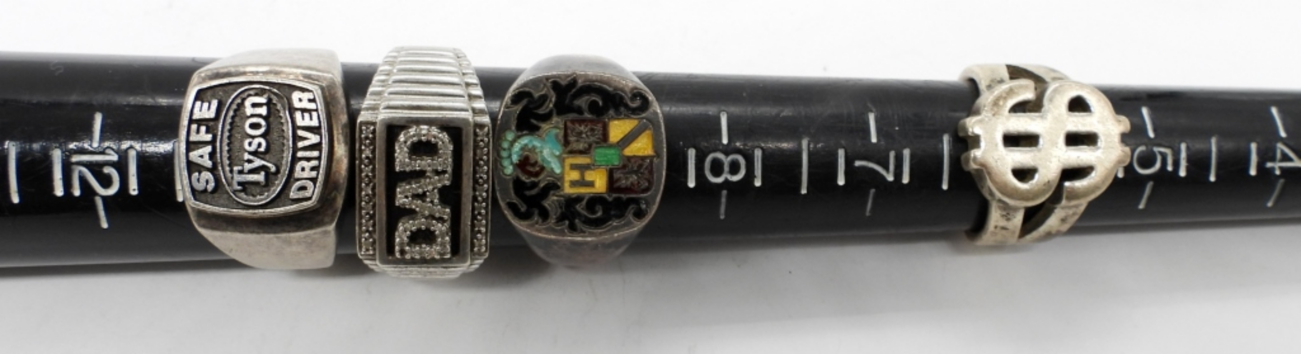 27 DWT. ALL BUT (1) STAMPED. SIZES: 9.5, 11, 10.75, 6