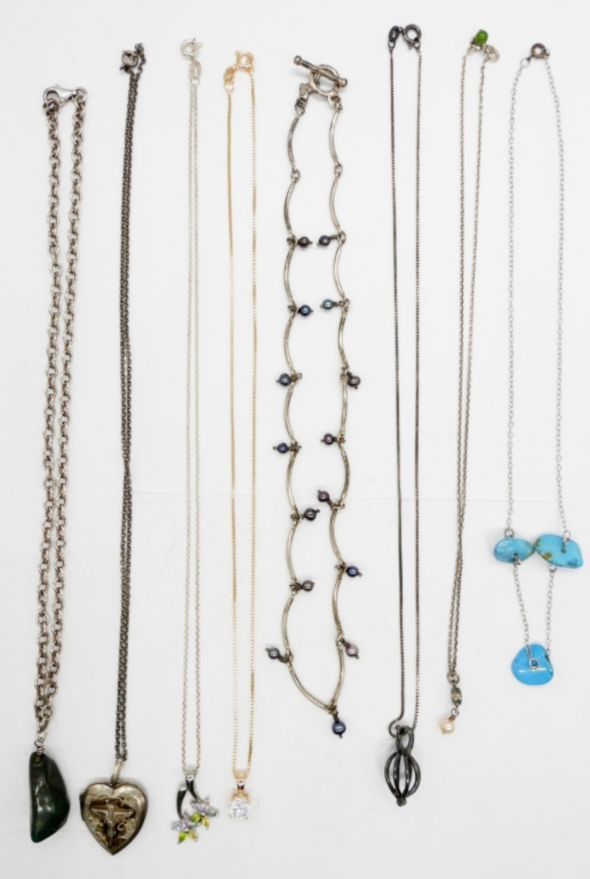 31 DWT. VARIOUS STYLES INCLUDING LOCKET, GEMSTONES, GOLD TONE. LENGTHS: (4) 16″, (4) 18″