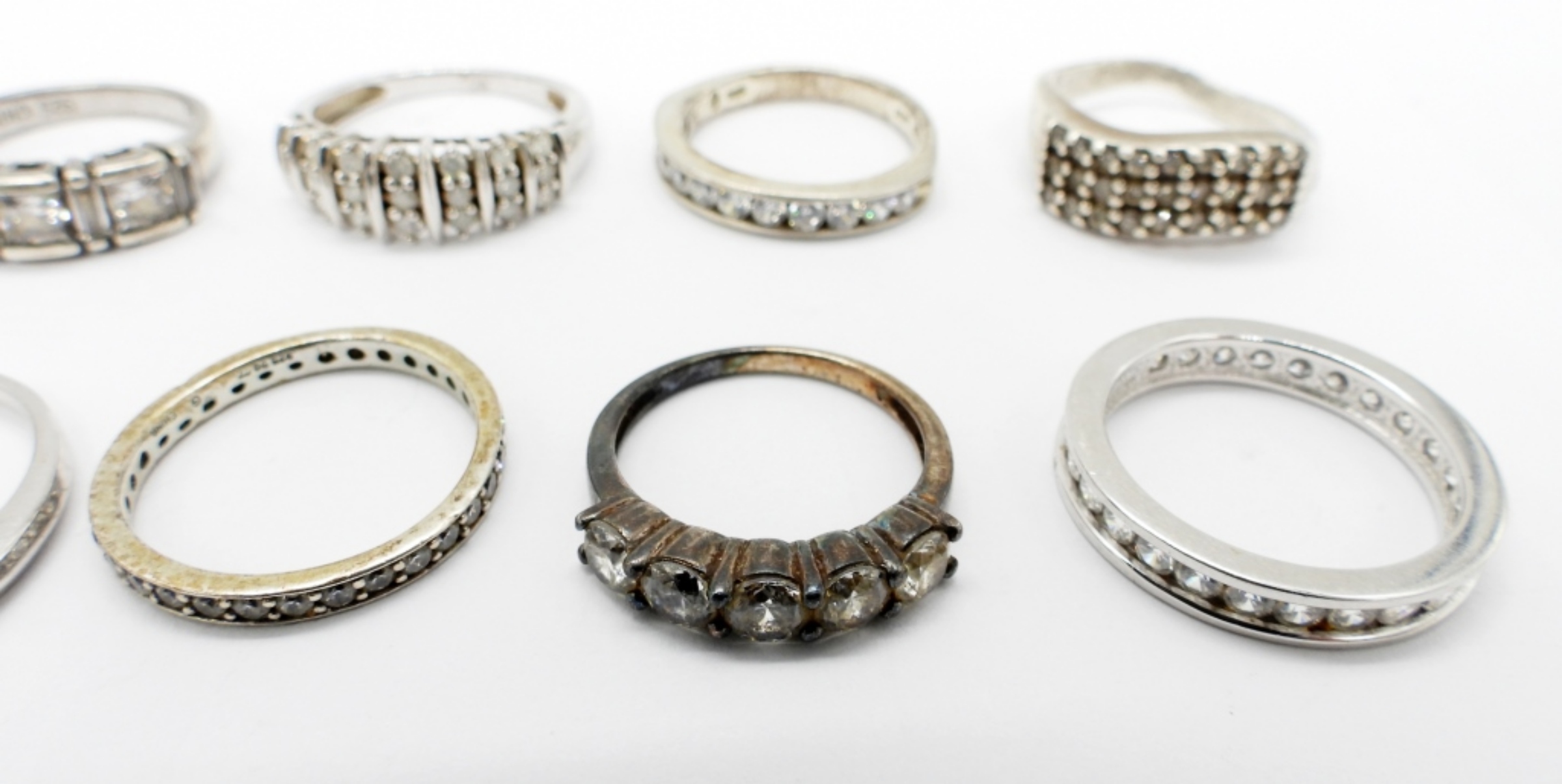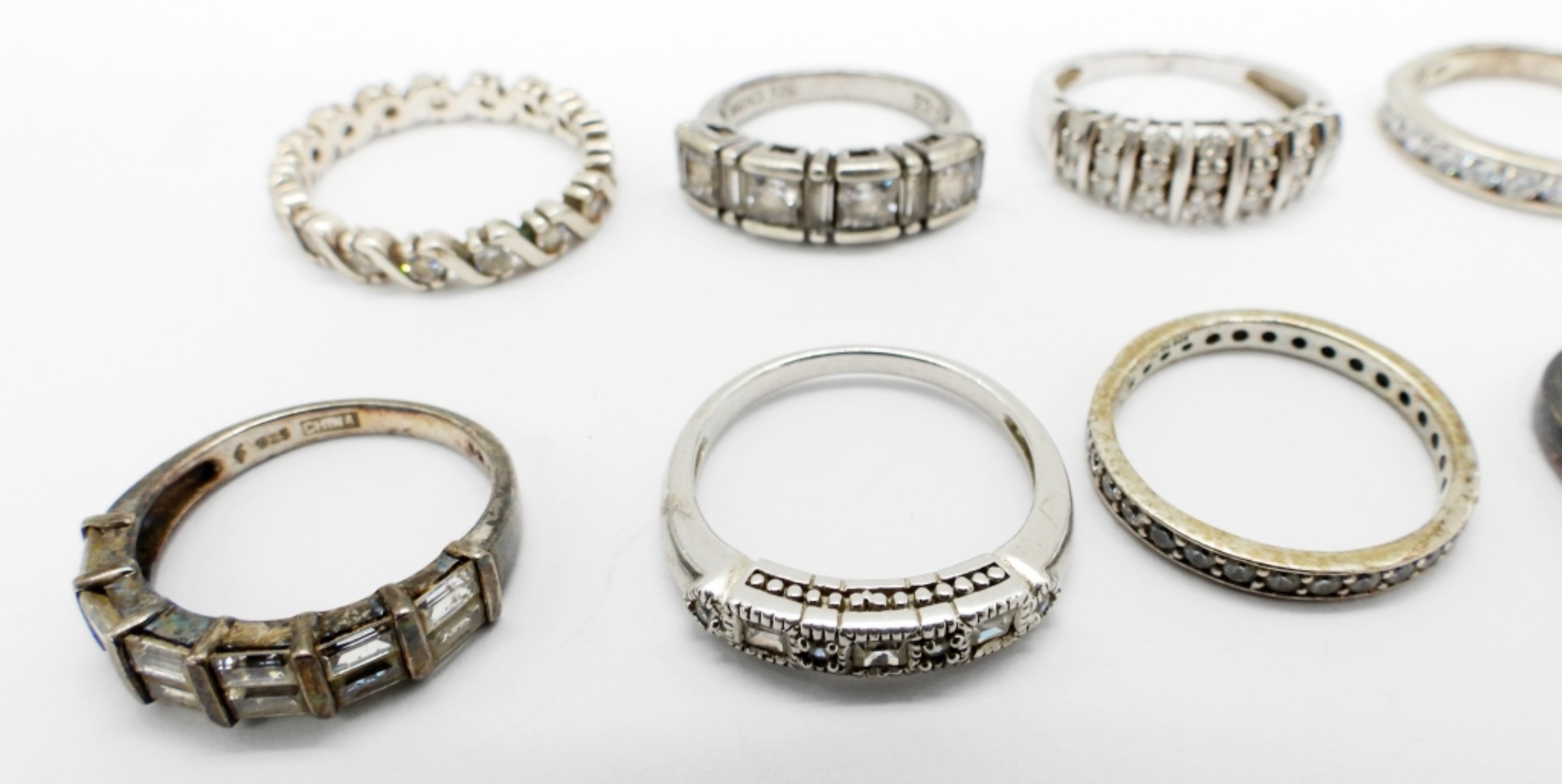 19 DWT. ALL STAMPED 925. SIZES: 6, (2) 6.25, (2) 7, 7.25, 7.5, 8, 8.5, 10