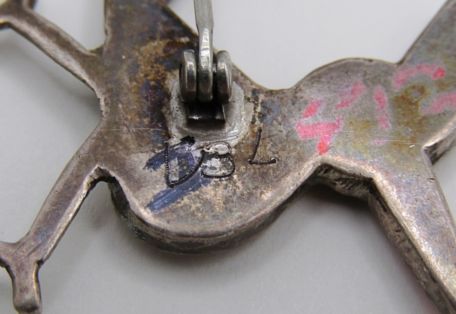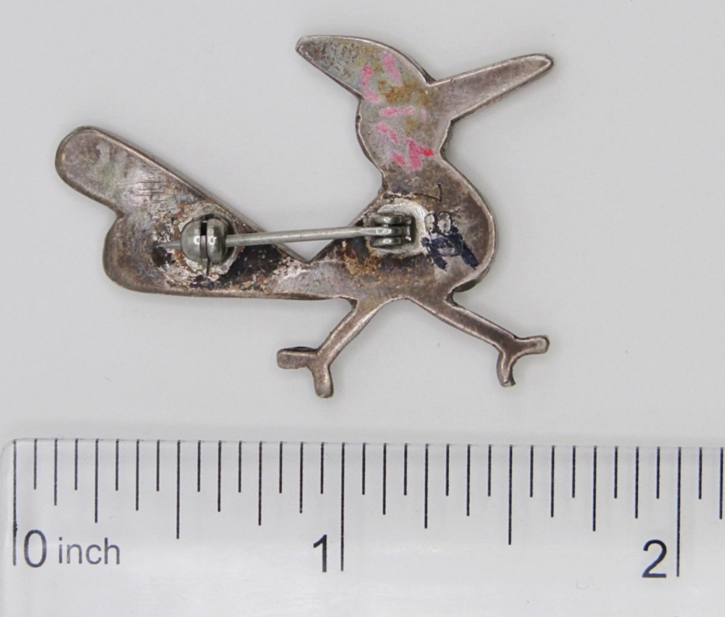 2 DWT. 1.5″ BROOCH PIN WITH INLAID STONE. SIGNED “VBL” ON BACK.