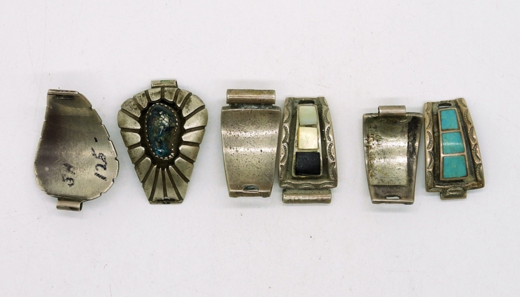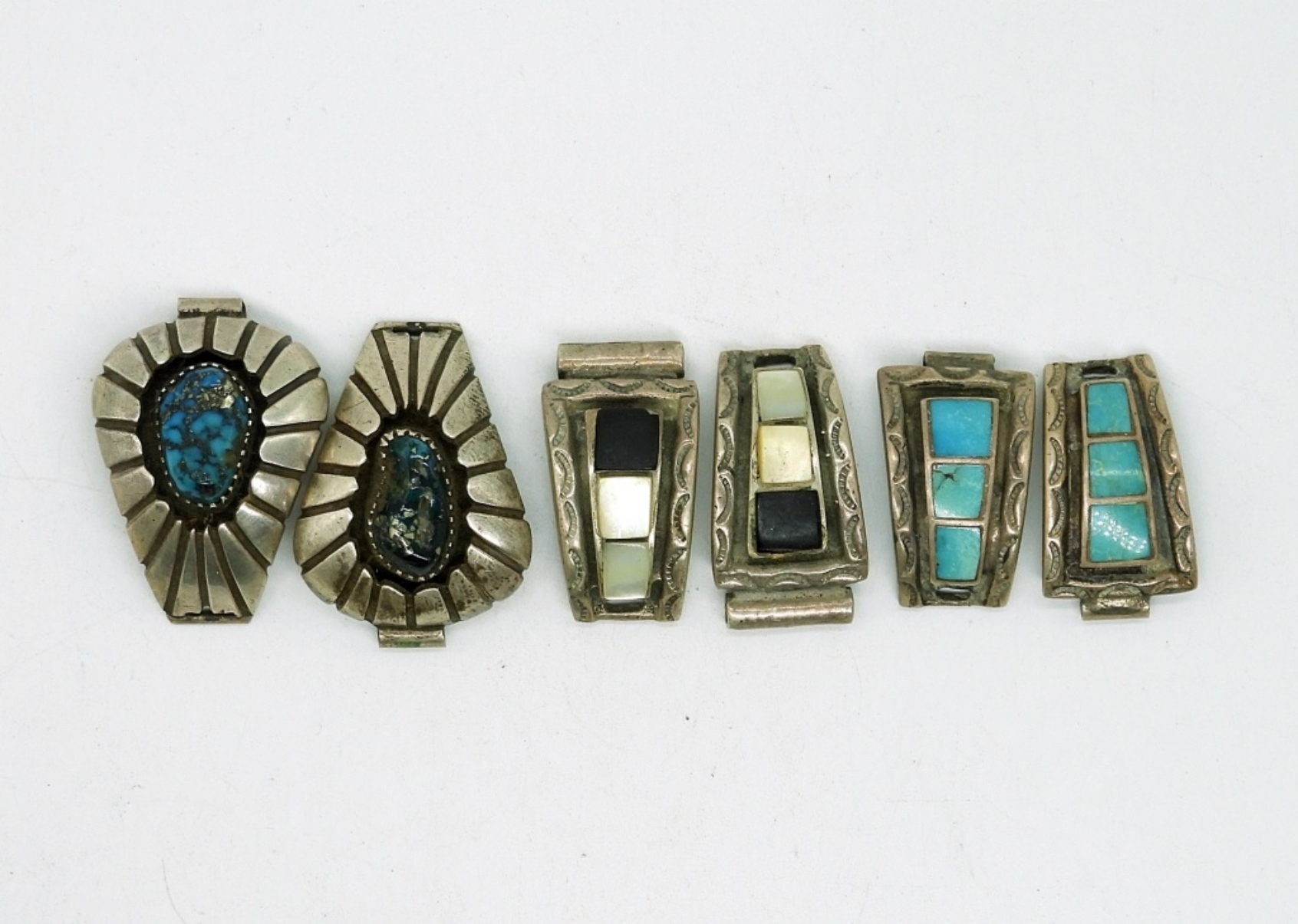 Three Vintage Sterling Silver & Turquoise Watch Ends. Two of them measure 1″x.5″, Larger one measures 1 1/4″x1″. 29.2 DWT