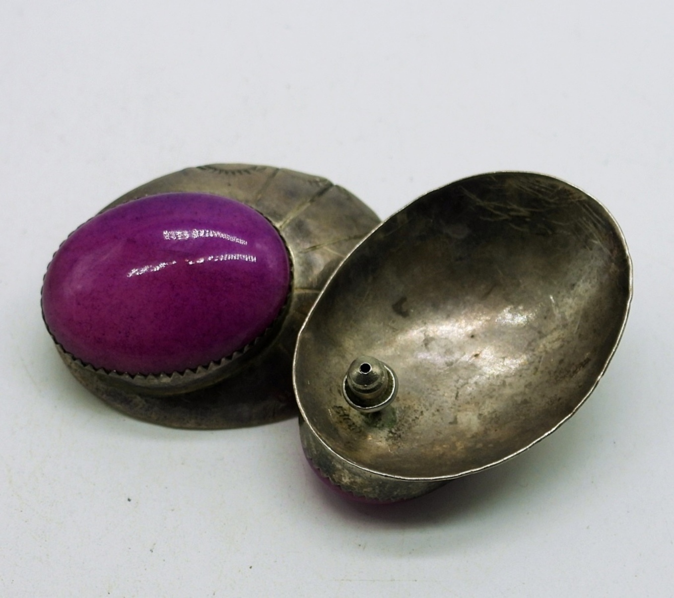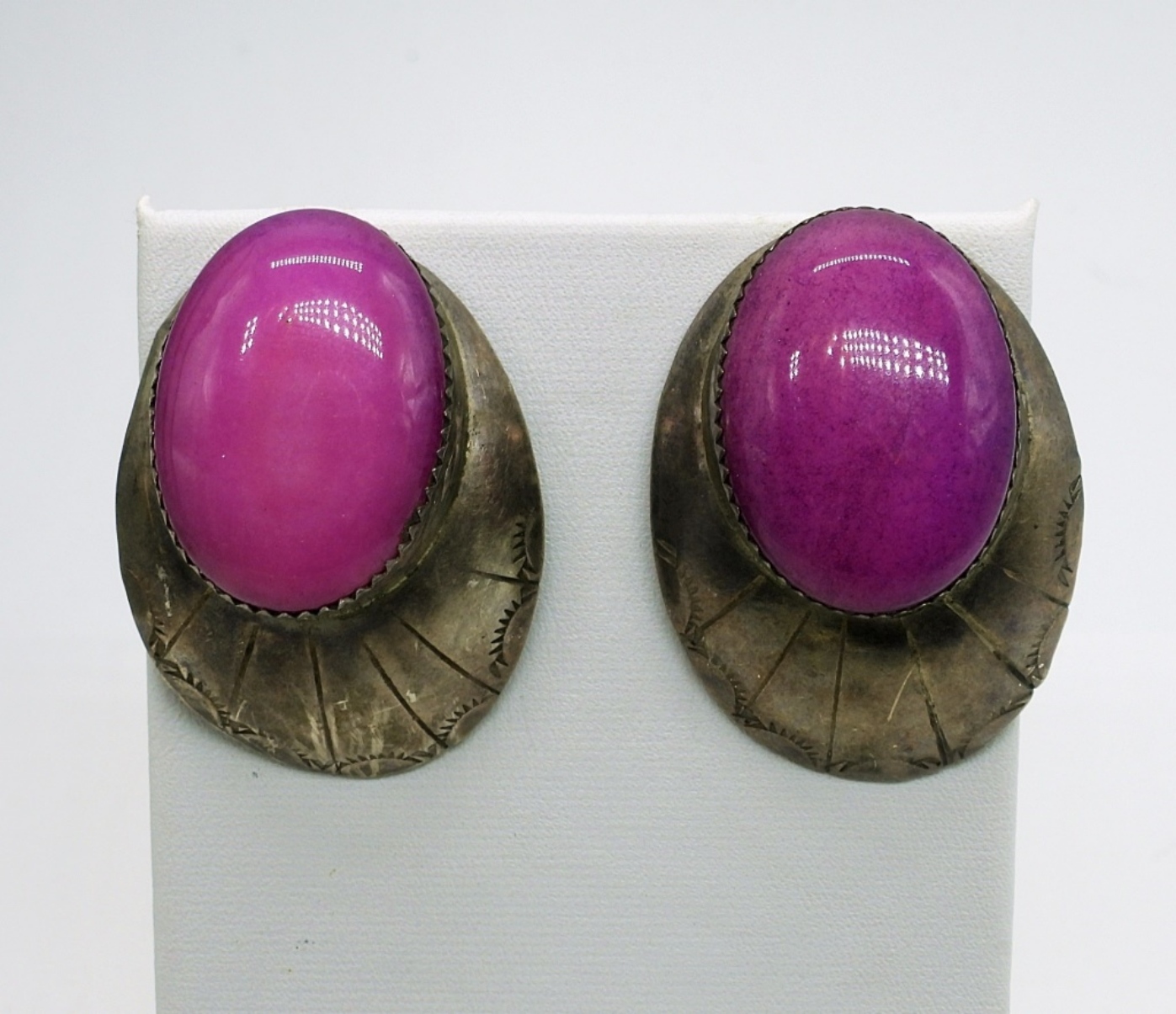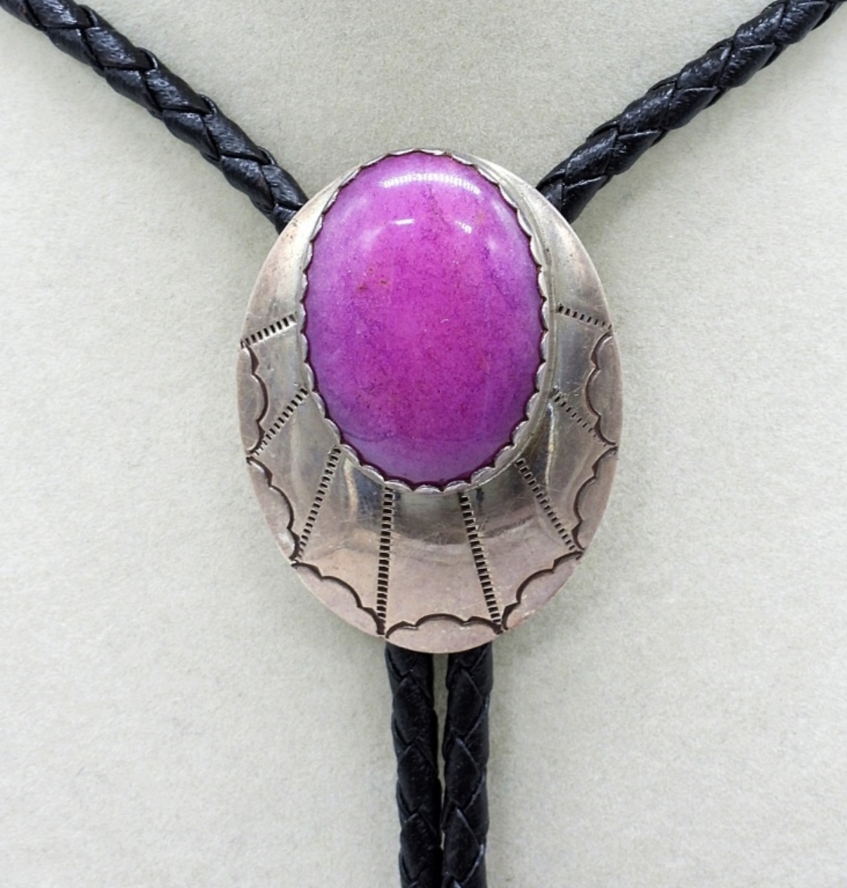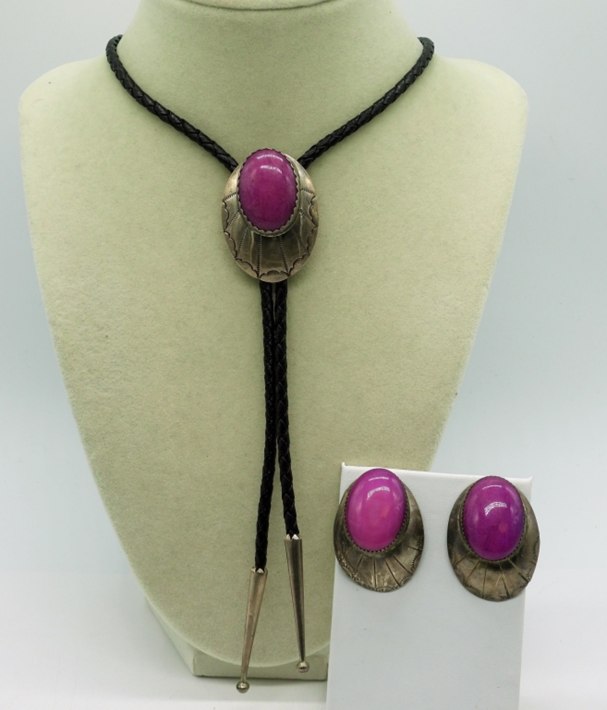 Matching Vintage Sterling Silver, Pink Agate Bolo Tie (36″) and Pierced Earrings(1 1/4″x1″). 27.4 DWT