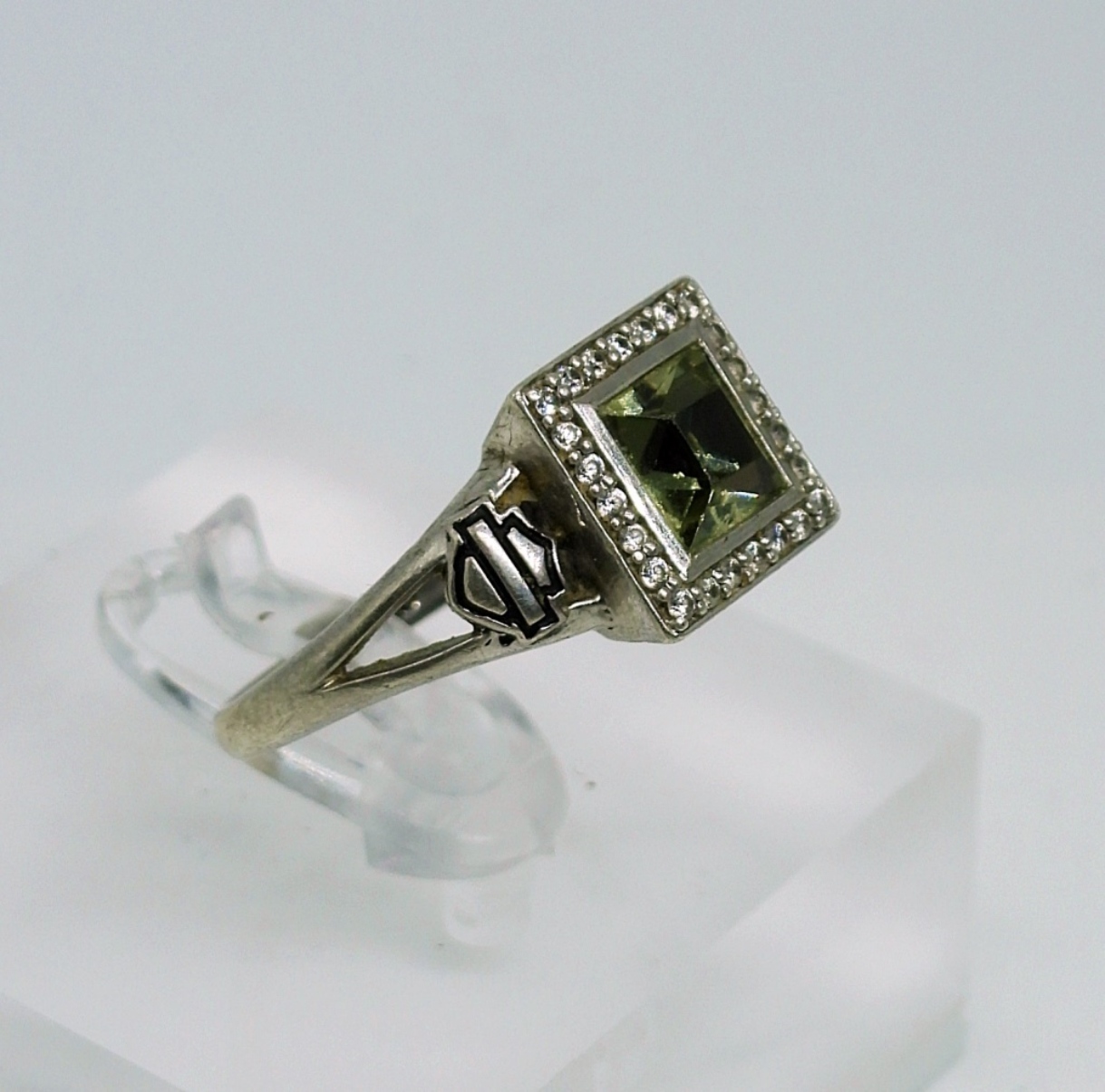 Sterling Silver Harley Davidson with Greenish Colored Gemstone. Harley Logo on the band. Marked “925 H-D”. Retail Price $125 2.4 DWT