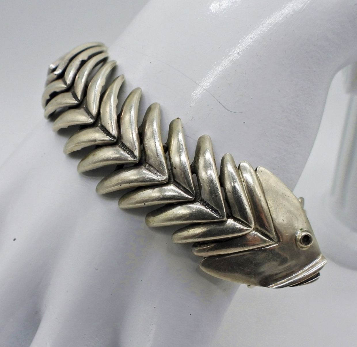 Vintage Sterling Silver Articulated Fish Bone Bracelet. 7.5″ and Marked 925. In Wonderful Condition! 47.6 DWT