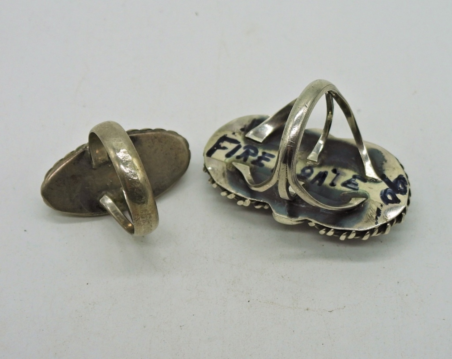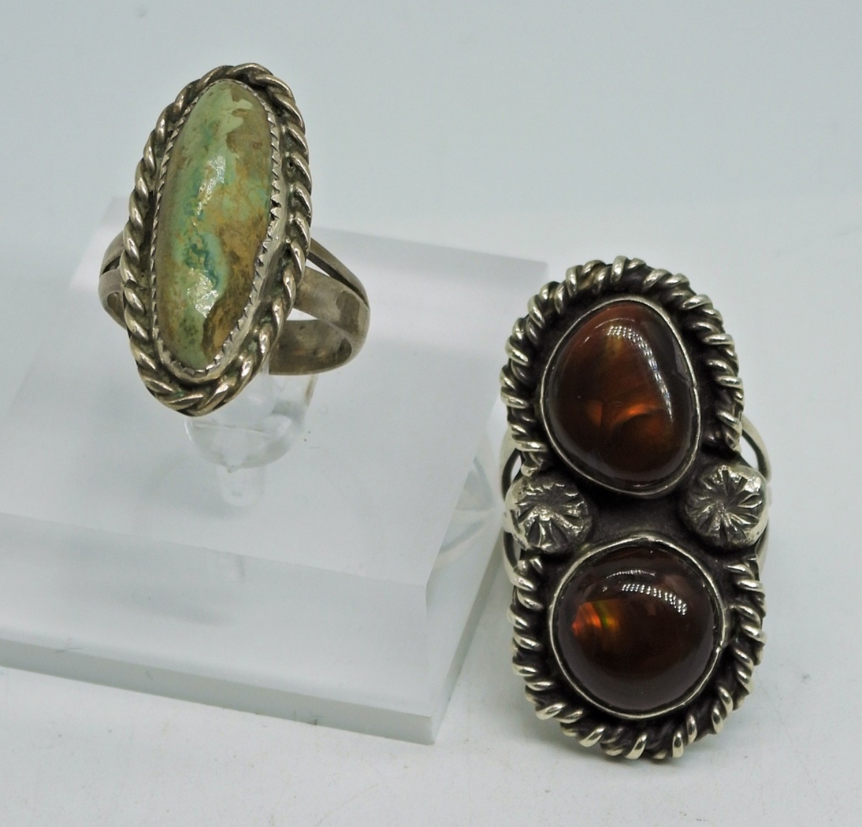 Sterling Silver Fire Agate 2 Stone Ring Size 7. Sterling Silver Light Green Turquoise Ring Size 7. DWT 11.8