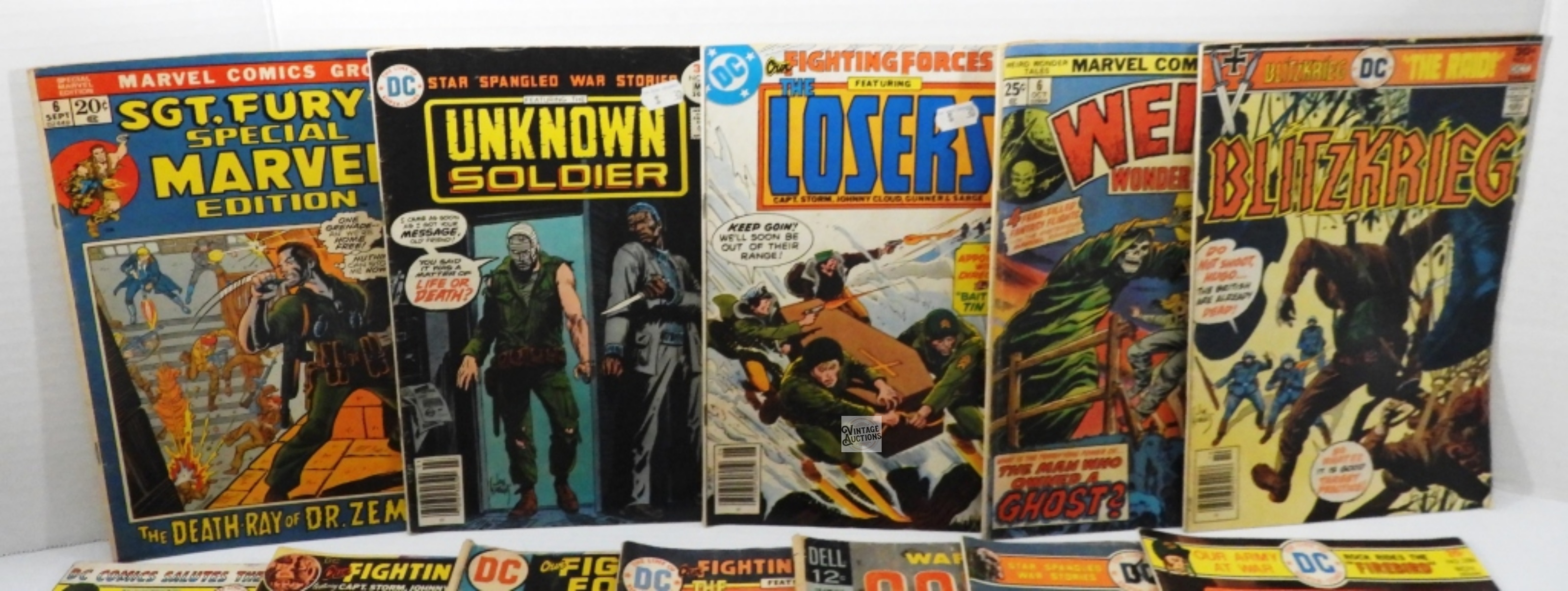 FAIR OR BETTER, ISSUES INCLUDE, COMBAT, THE LOSERS, OUR FIGHTING FORCES, WEIRD WAR TALES, BLITZKRIEG, UNKNOWN SOLDIERS, SGT FURY, OUR ARMY AT WAR