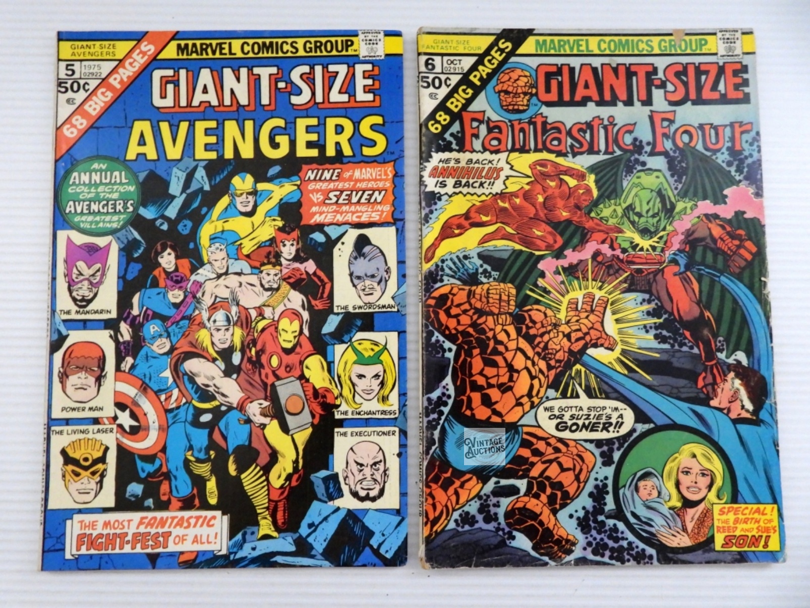 1975 GIANT-SIZE #5 AVENGERS VG/FINE & #6 FANTASTIC FOUR VG