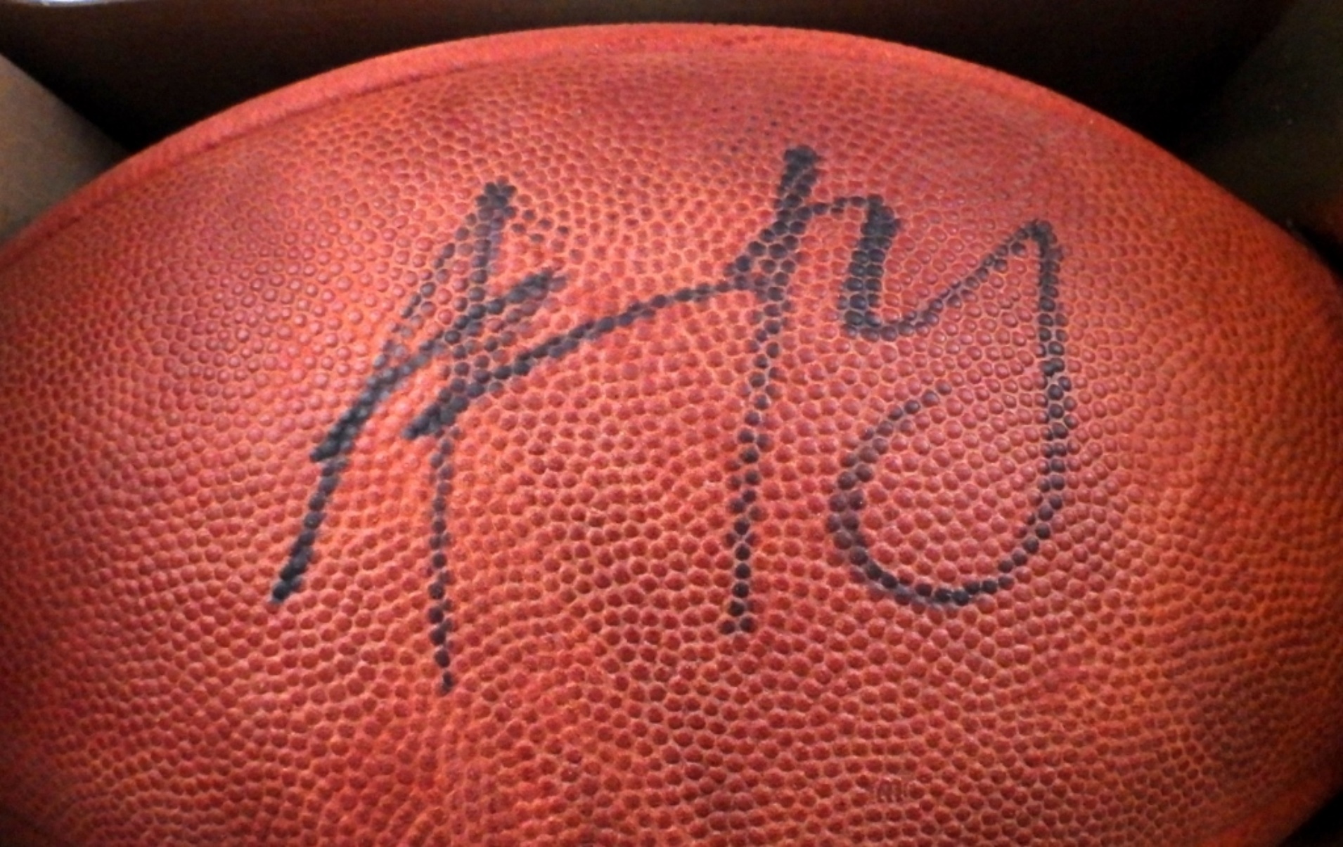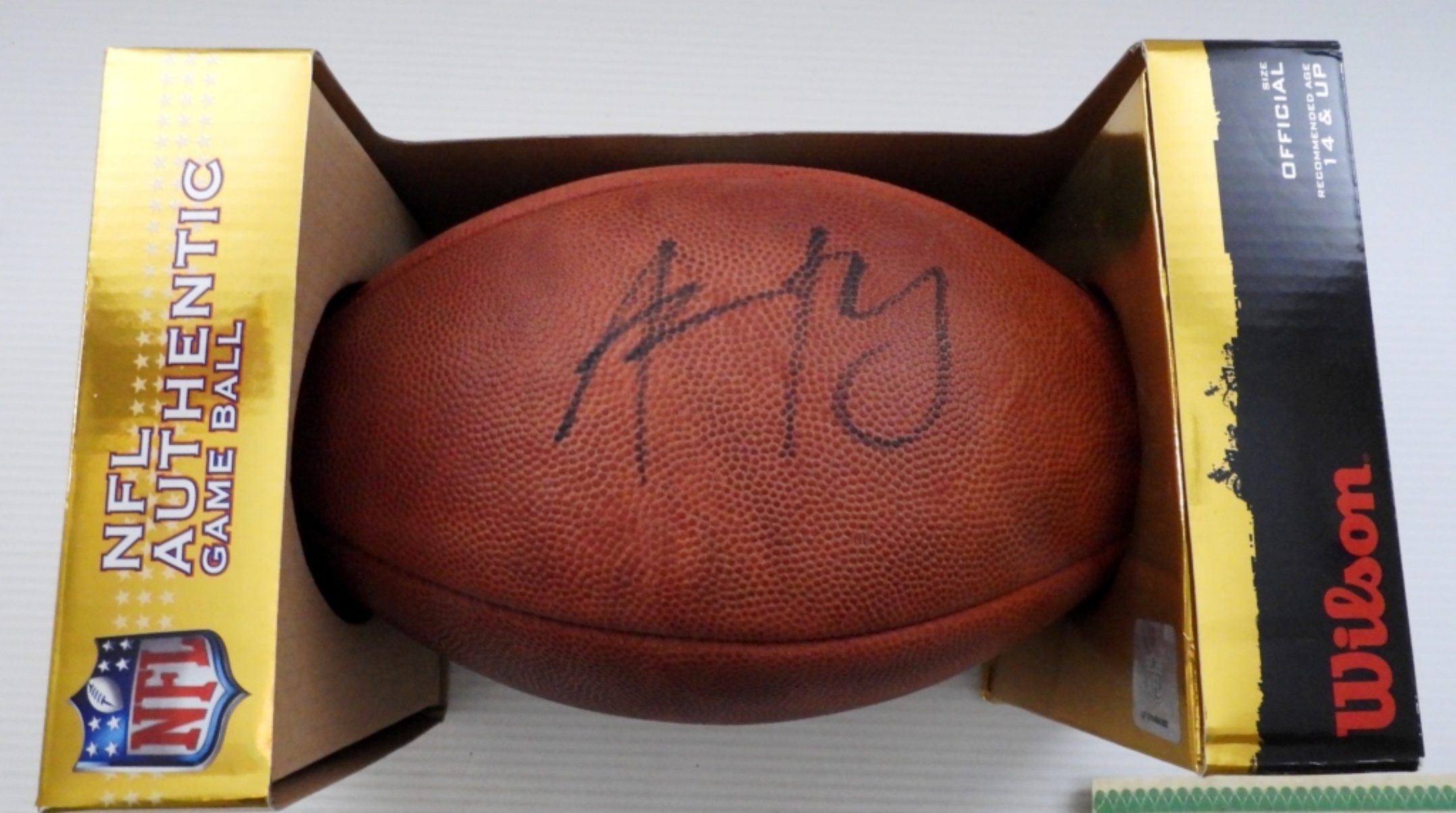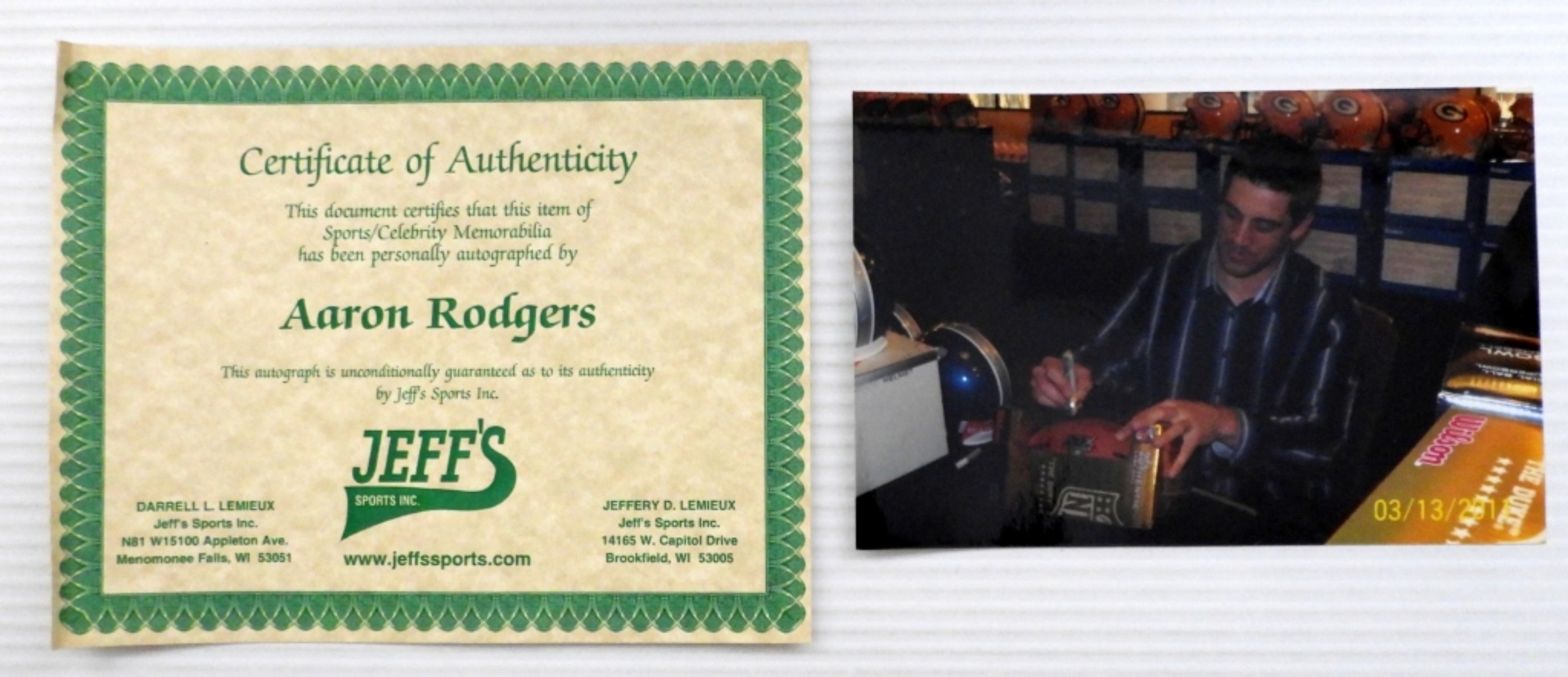 WITH COA FROM JEFF’S SPORTS INC. AND PHOTOS OF AARON SIGNING THE FOOTBALL