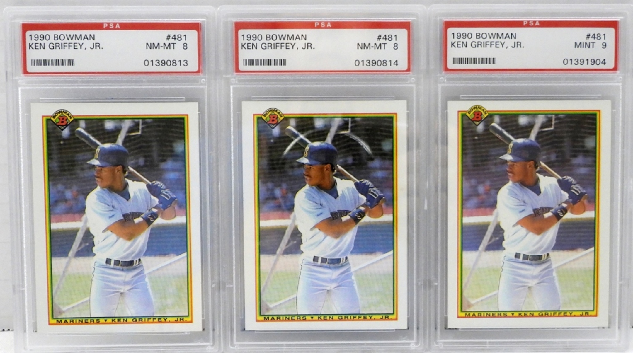 1990 BOWMAN KEN GRIFFEY JR #481 BASEBALL CARDS GRADED BY PSA (1) MINT 9 (2) NM-MT 8