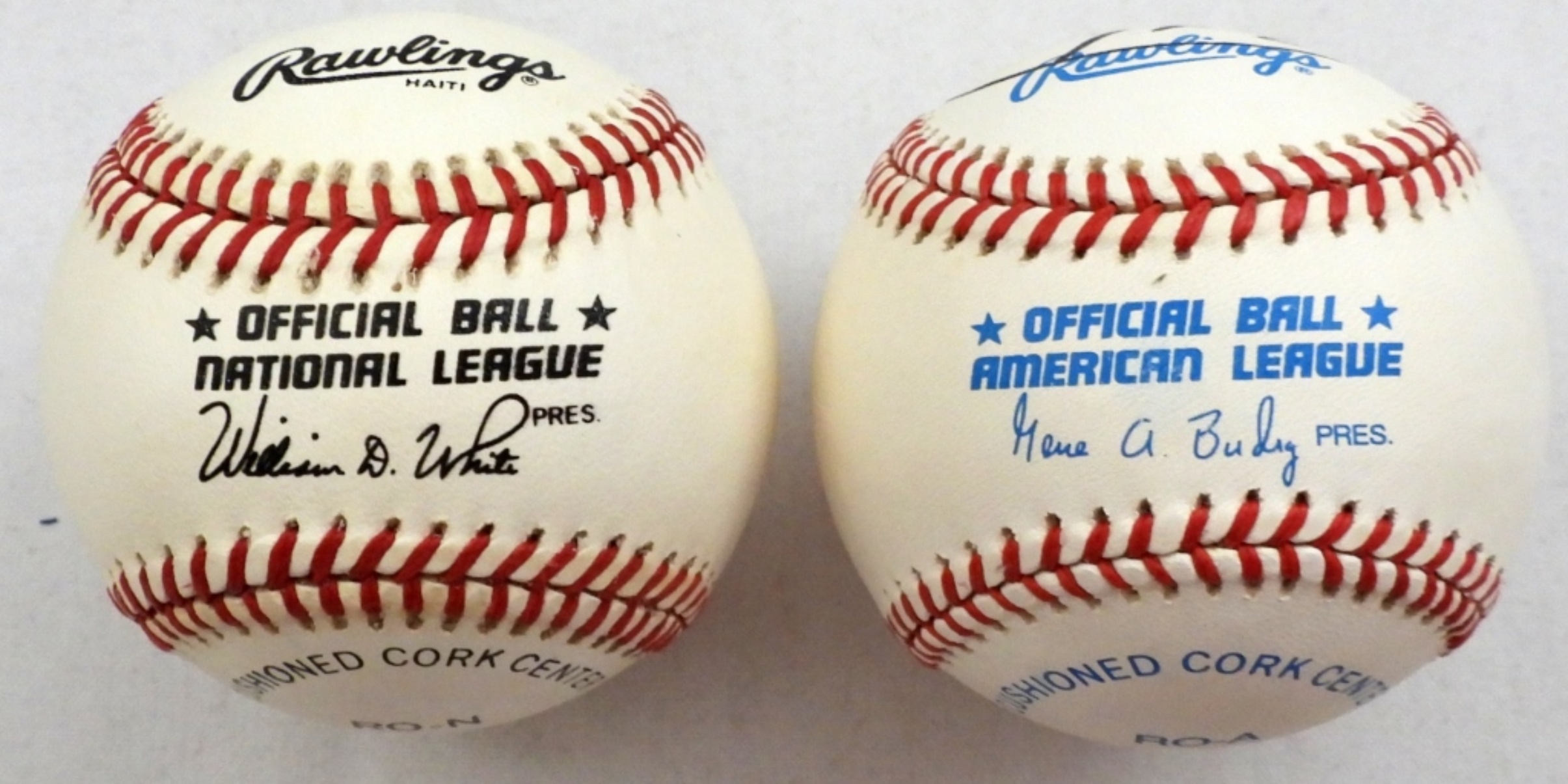 BARTOLO COLON OFFICIAL AMERICAN LEAGUE BALL & DAVID JUSTICE OFFICIAL NATIONAL LEAGUE BALL