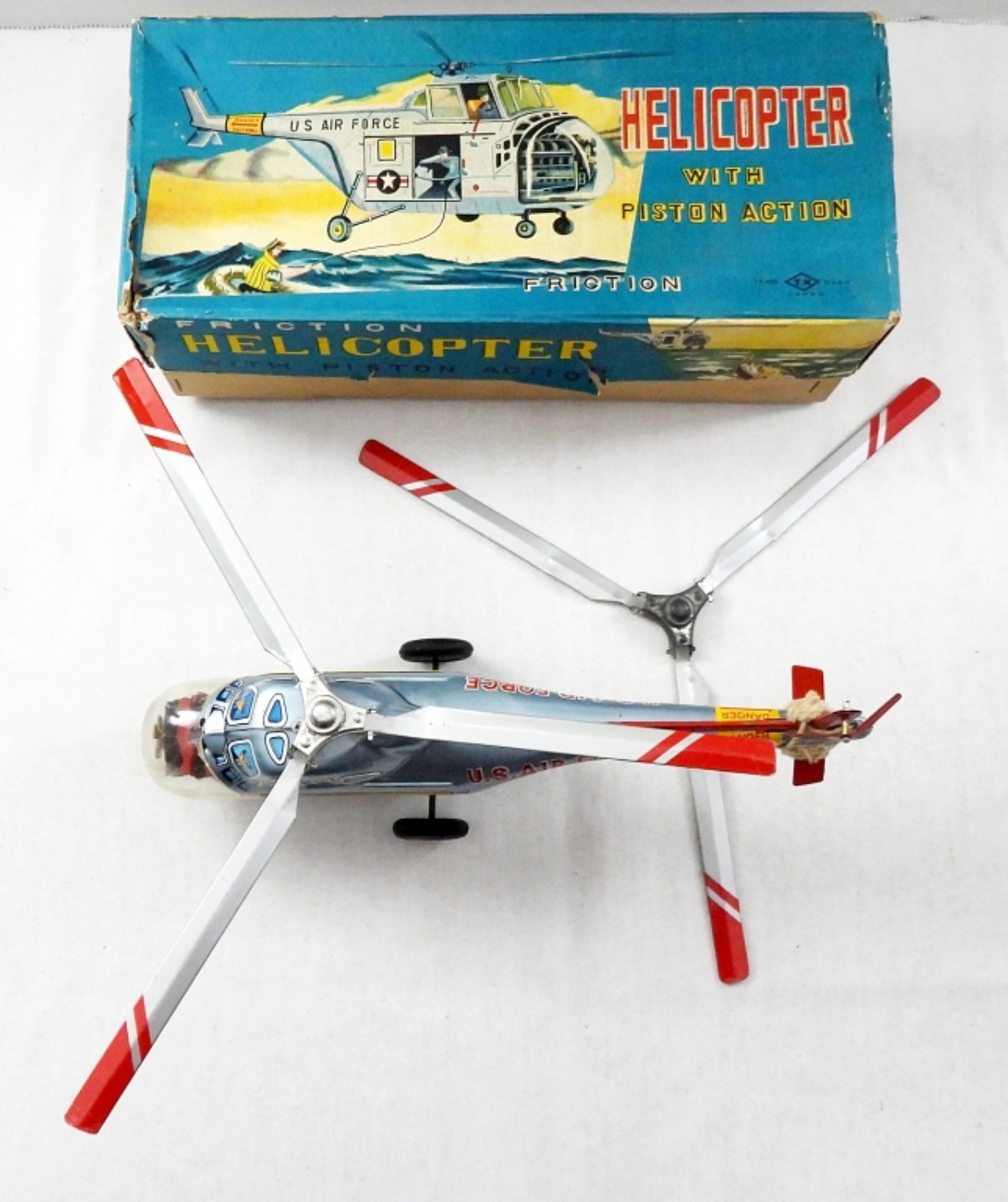 in ORIGINAL BOX – JAPAN T.N. – (2) HELICOPTER BLADES – WORKING CONDITION – COCKPIT HAS CRACK in PLASTIC