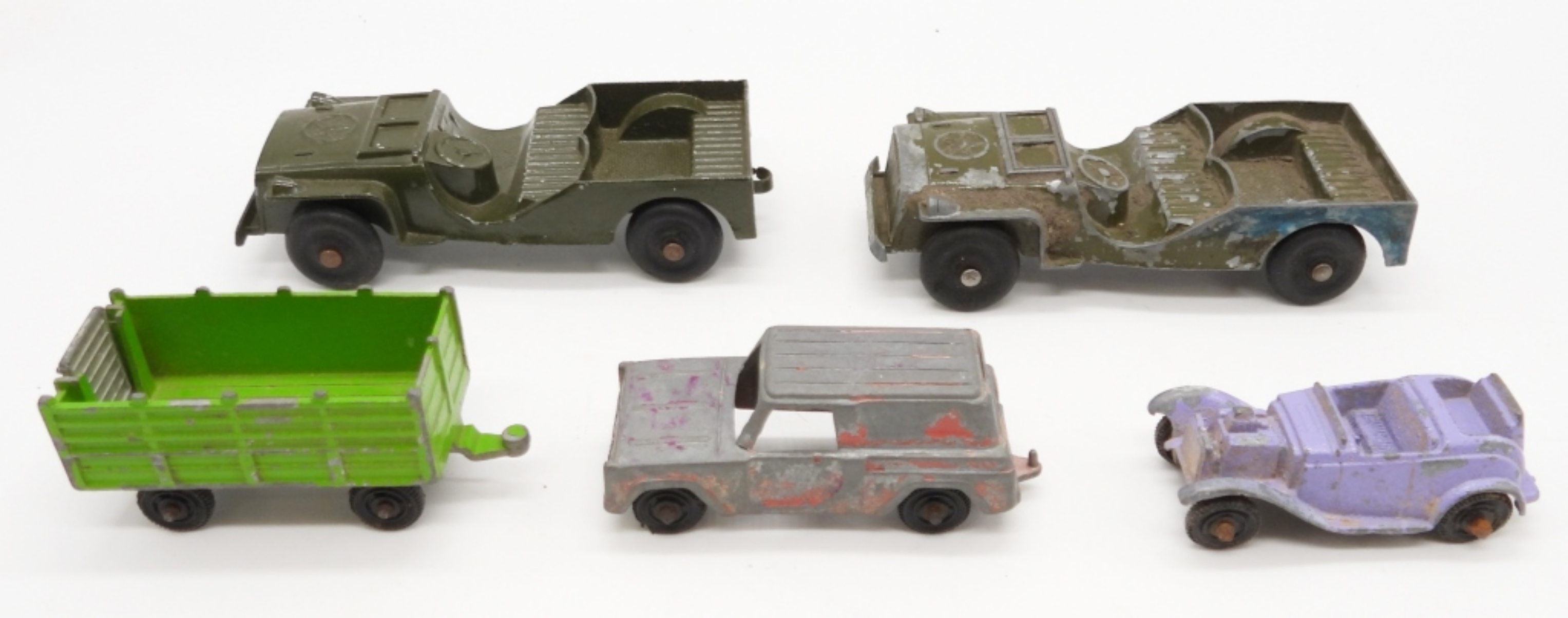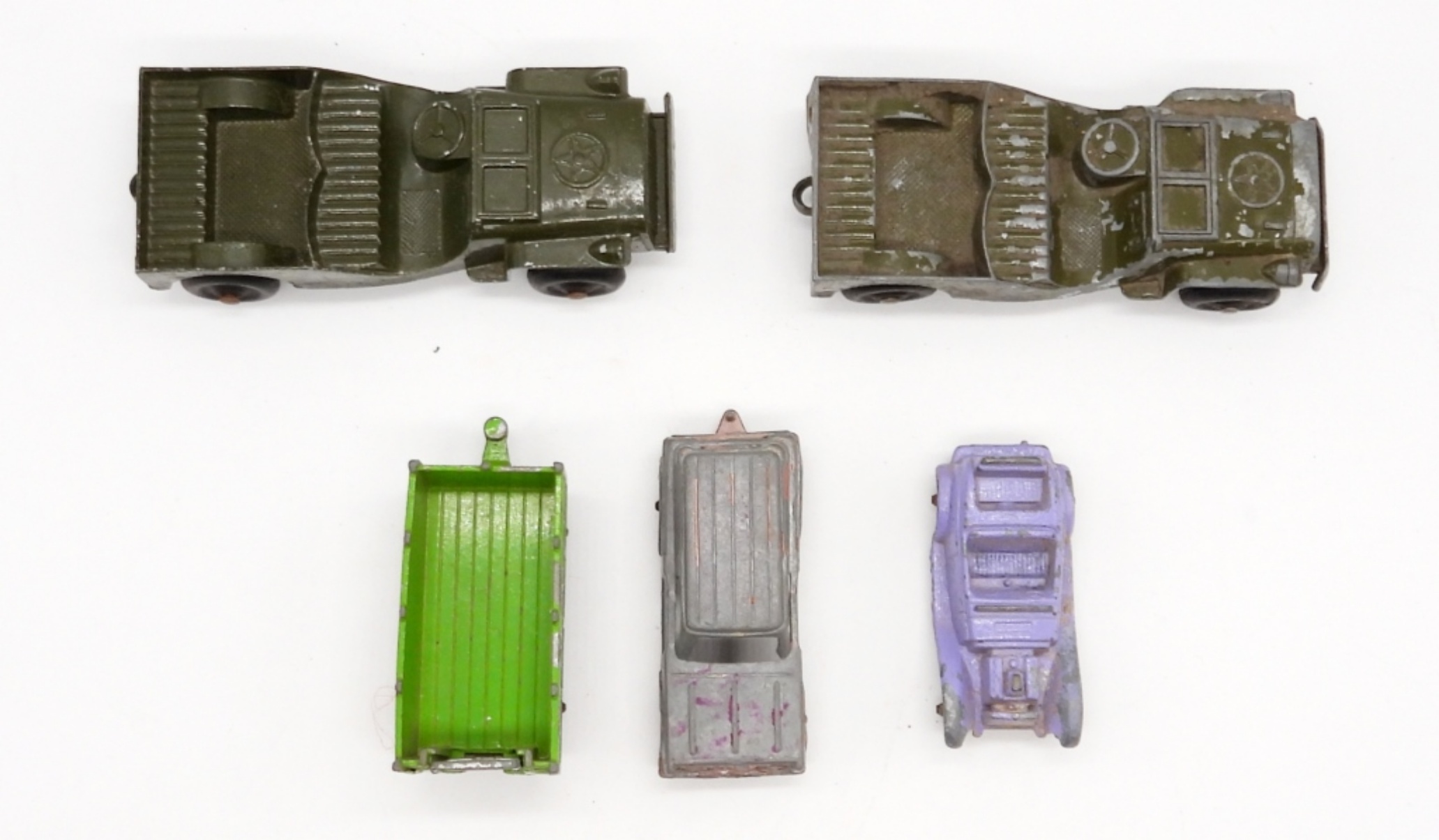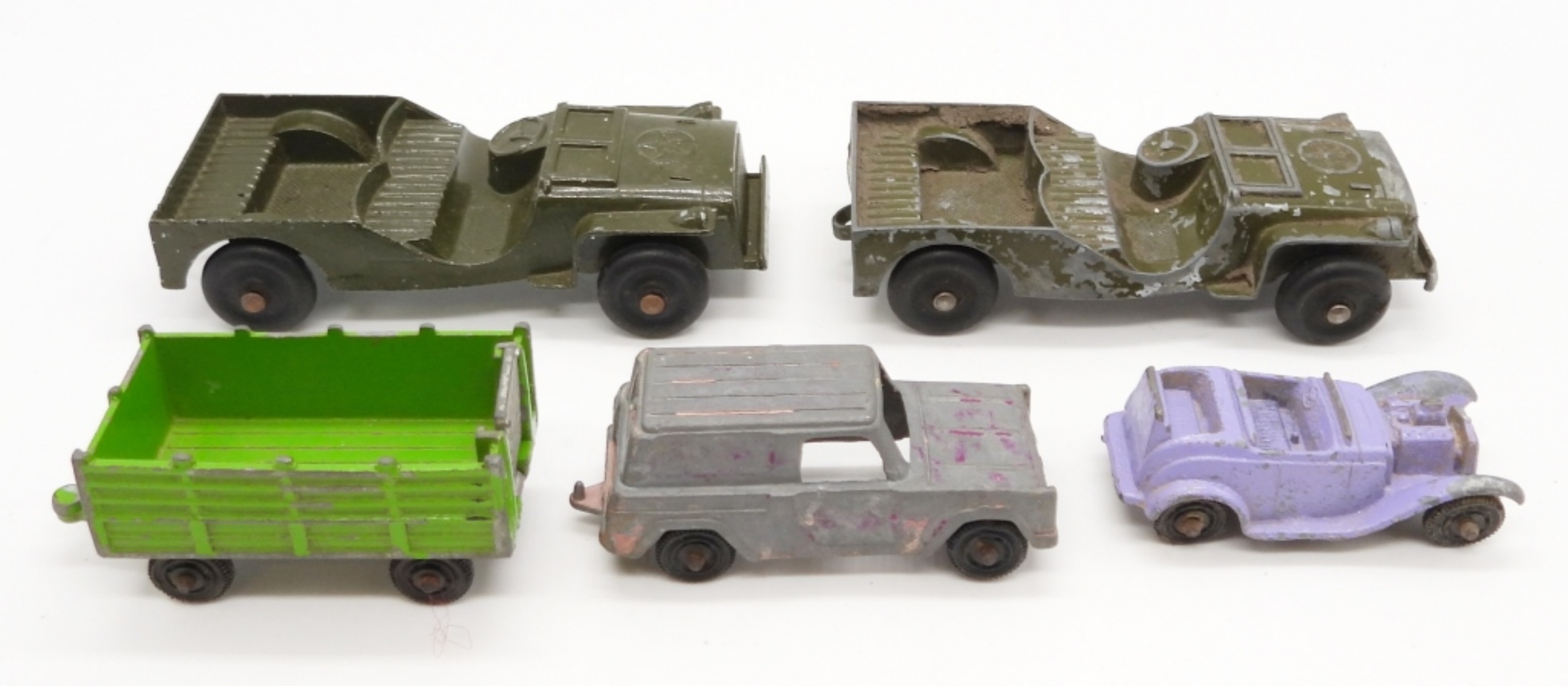 TOOTSIE TOY ARMY TRUCKS, CAR, TRUCK, TRAILER