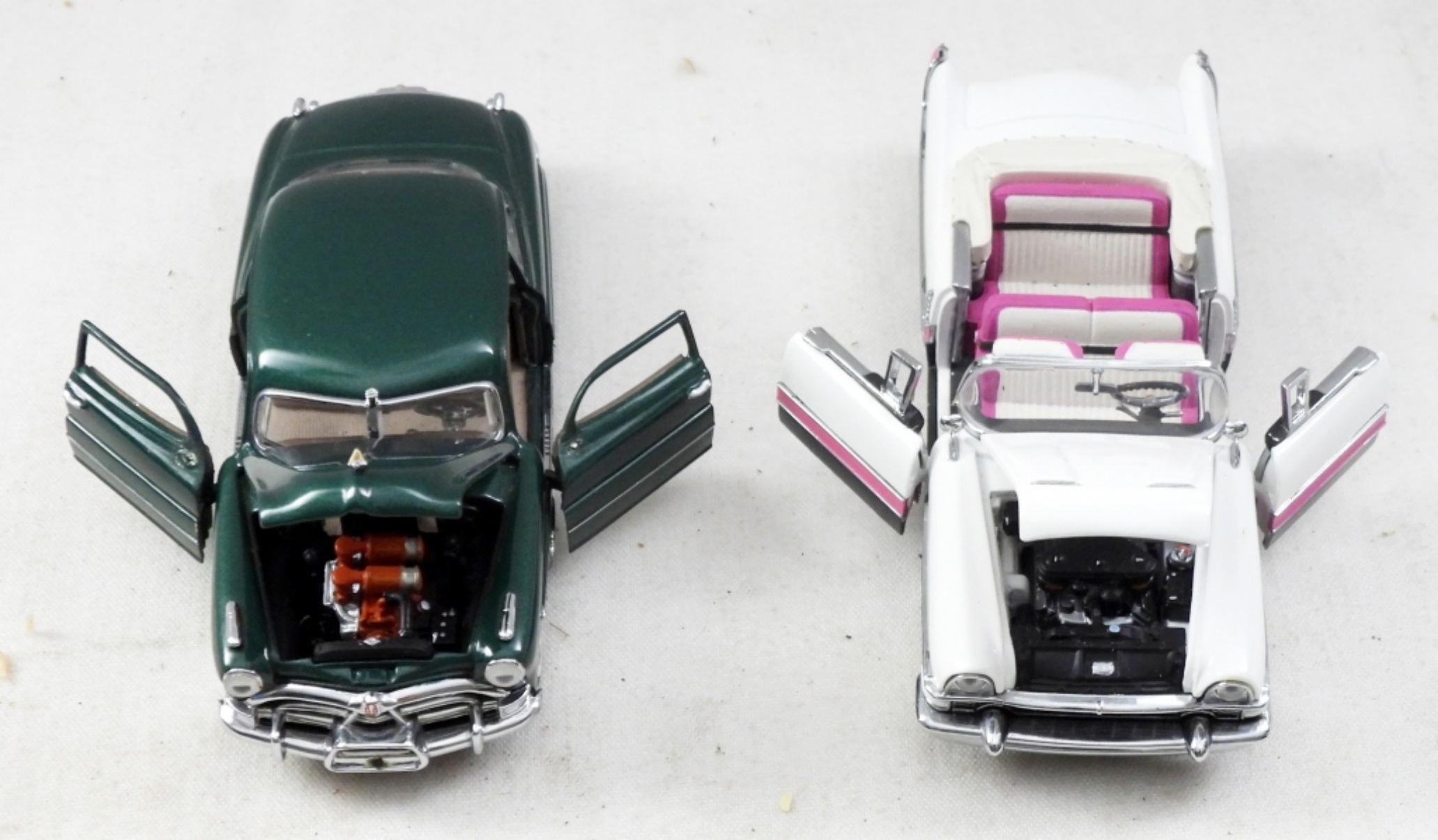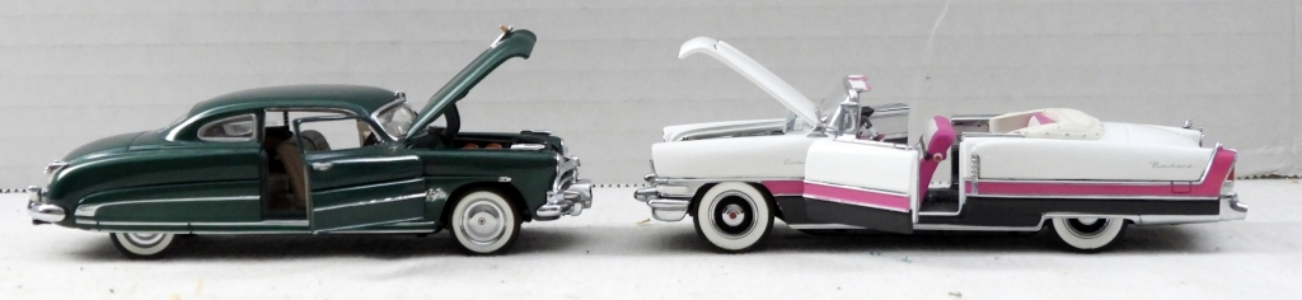 DIECAST GREEN 1951 HUDSON HORNET 1:24 SCALE SPORT COUPE; DIECAST 1955 PACKARD CARIBBEAN CONVERTIBLE 1:24 SCALE; EXCELLENT CONDITION