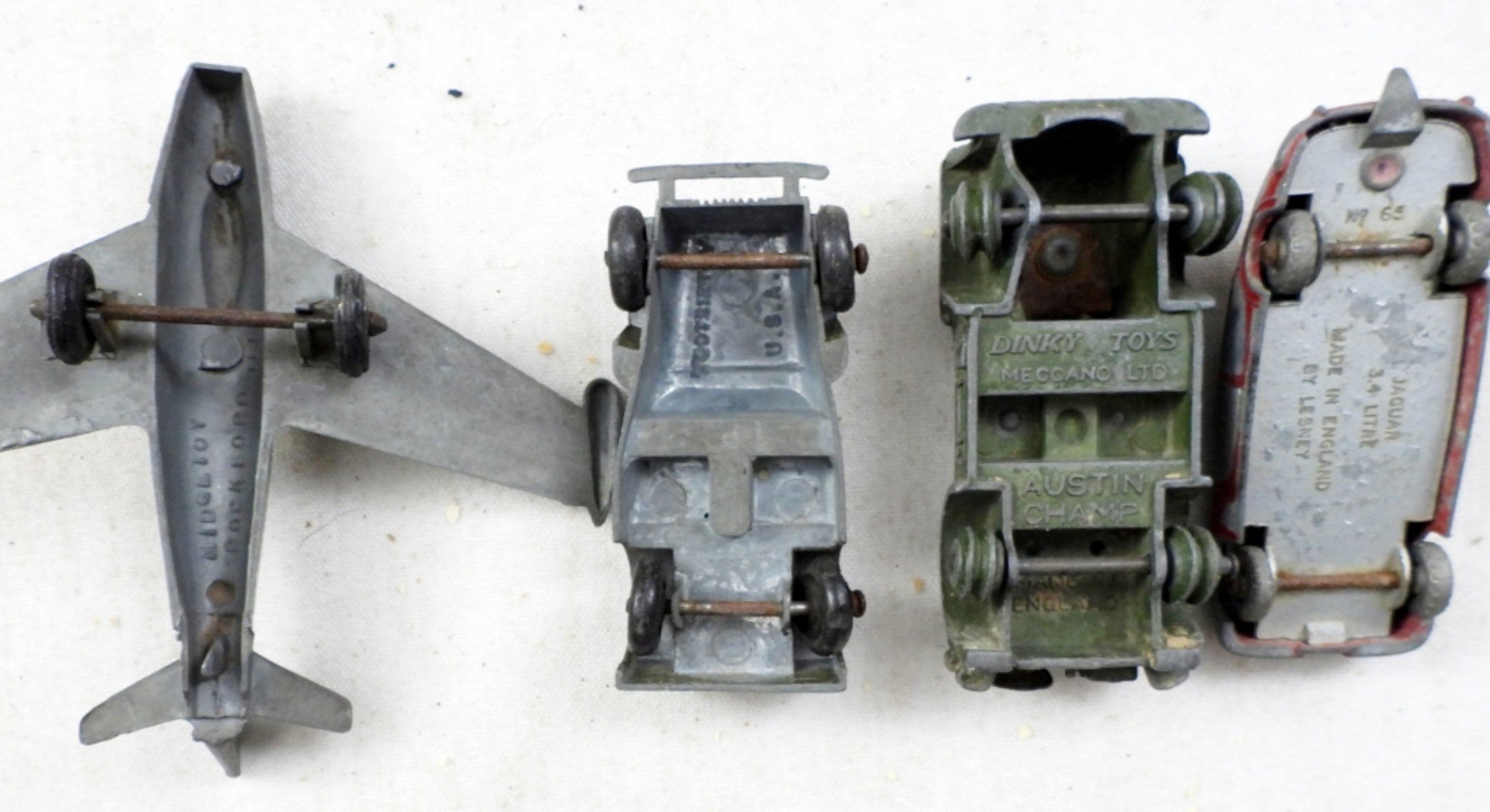 TOOTSIE TOY CARS, DINKY TOYS ARMY TRUCKS, MIDGETOY AIRPLANE, MATCHBOX CAR & MORE – NICE CONDITION