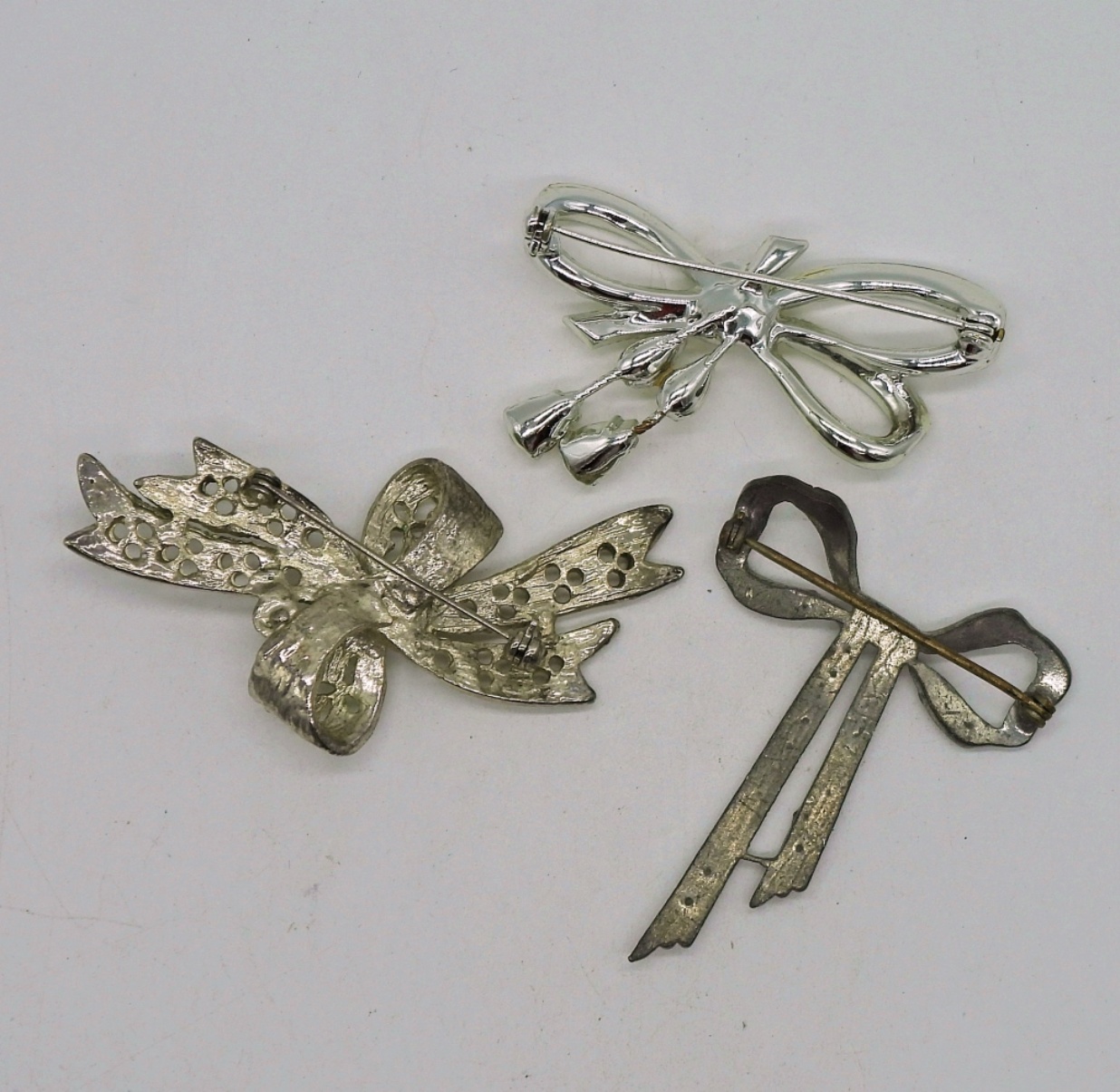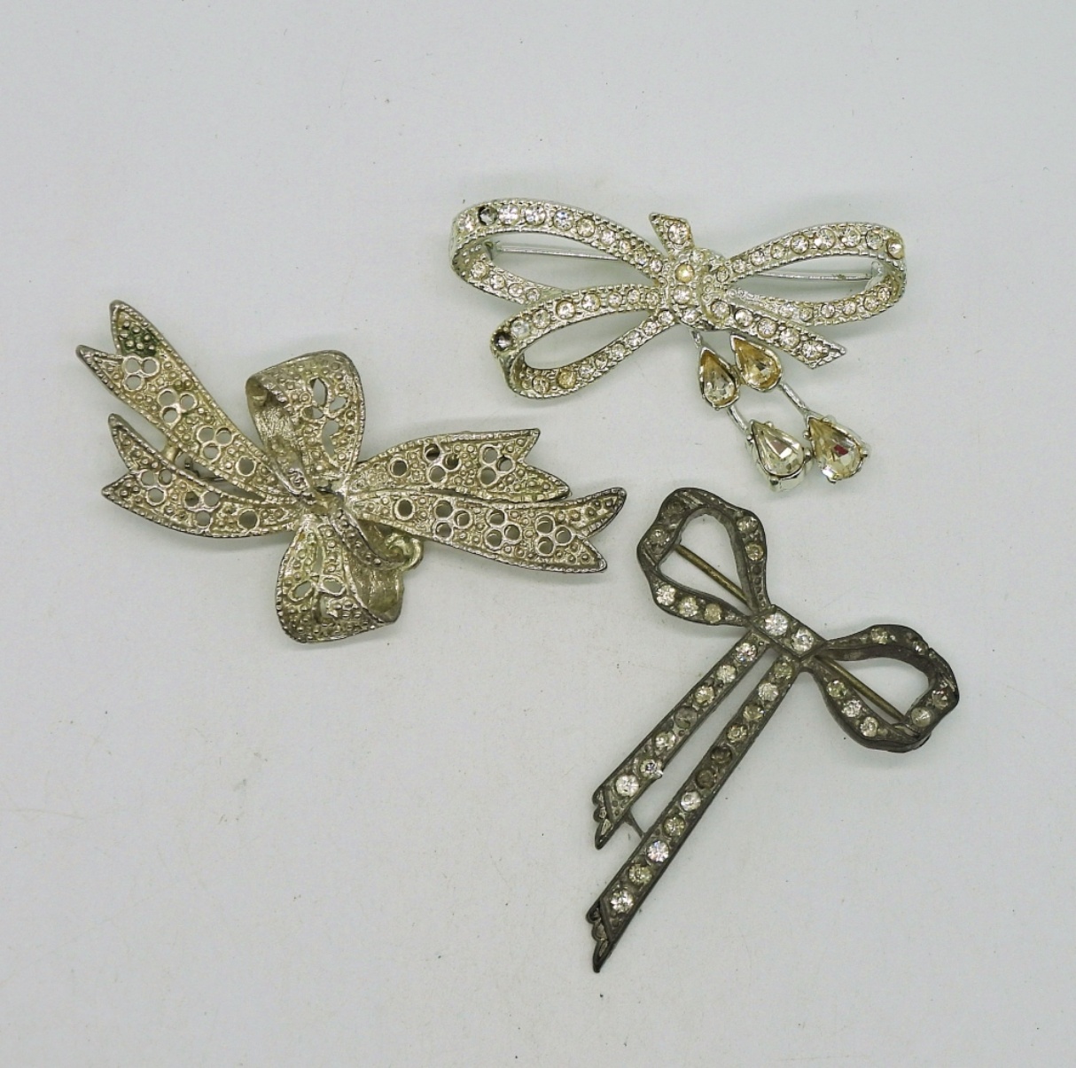 Three Vintage White Rhinestone Brooches.