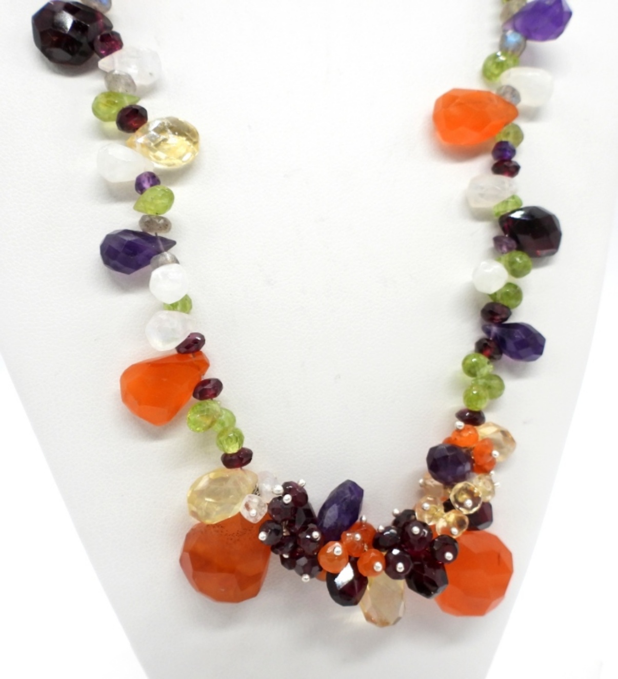 Colorful Natural Gemstone Matching Necklace & Bracelet Set with Sterling Clasps. Necklace is 17″-20″ adjustable. Bracelet is 7″-8″ adjustable.