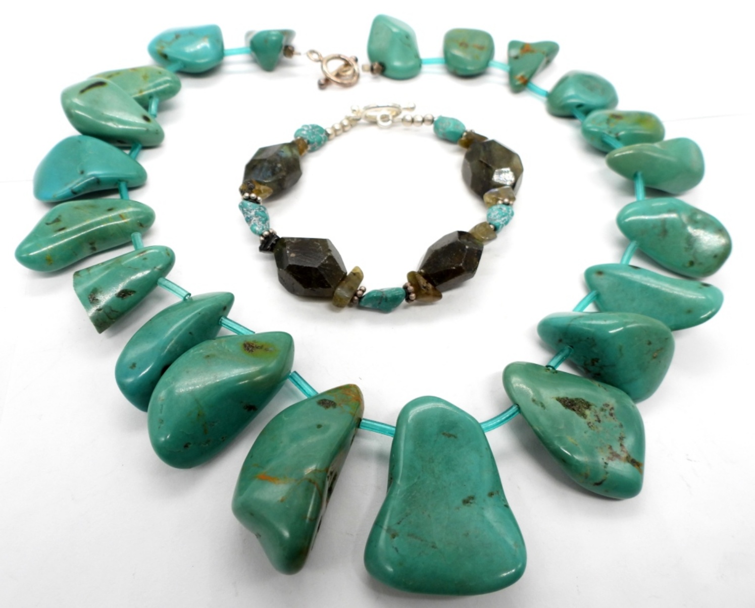 16″ Large Turquoise Necklace and 8″ Turquoise & Labradorite Bracelet.