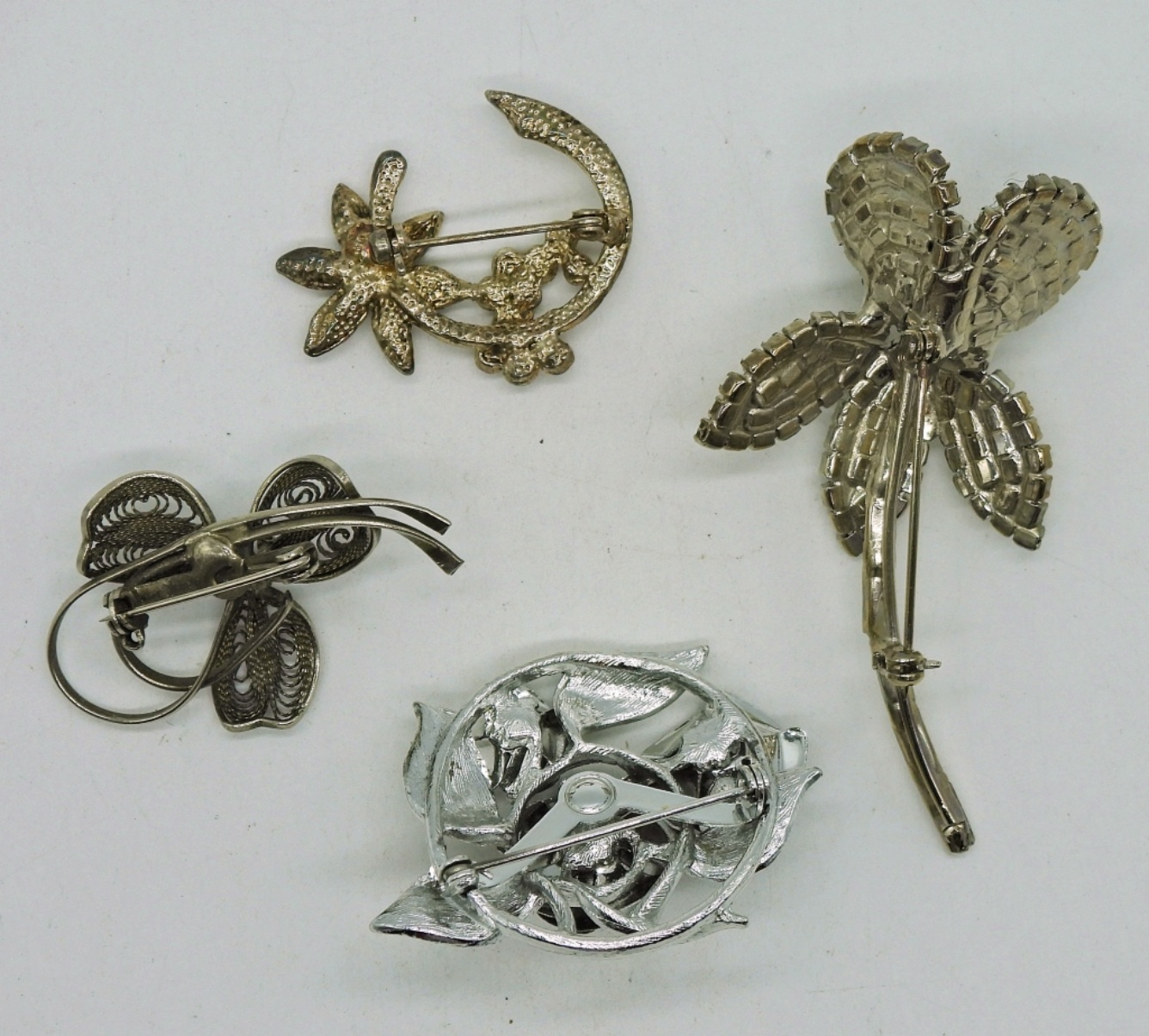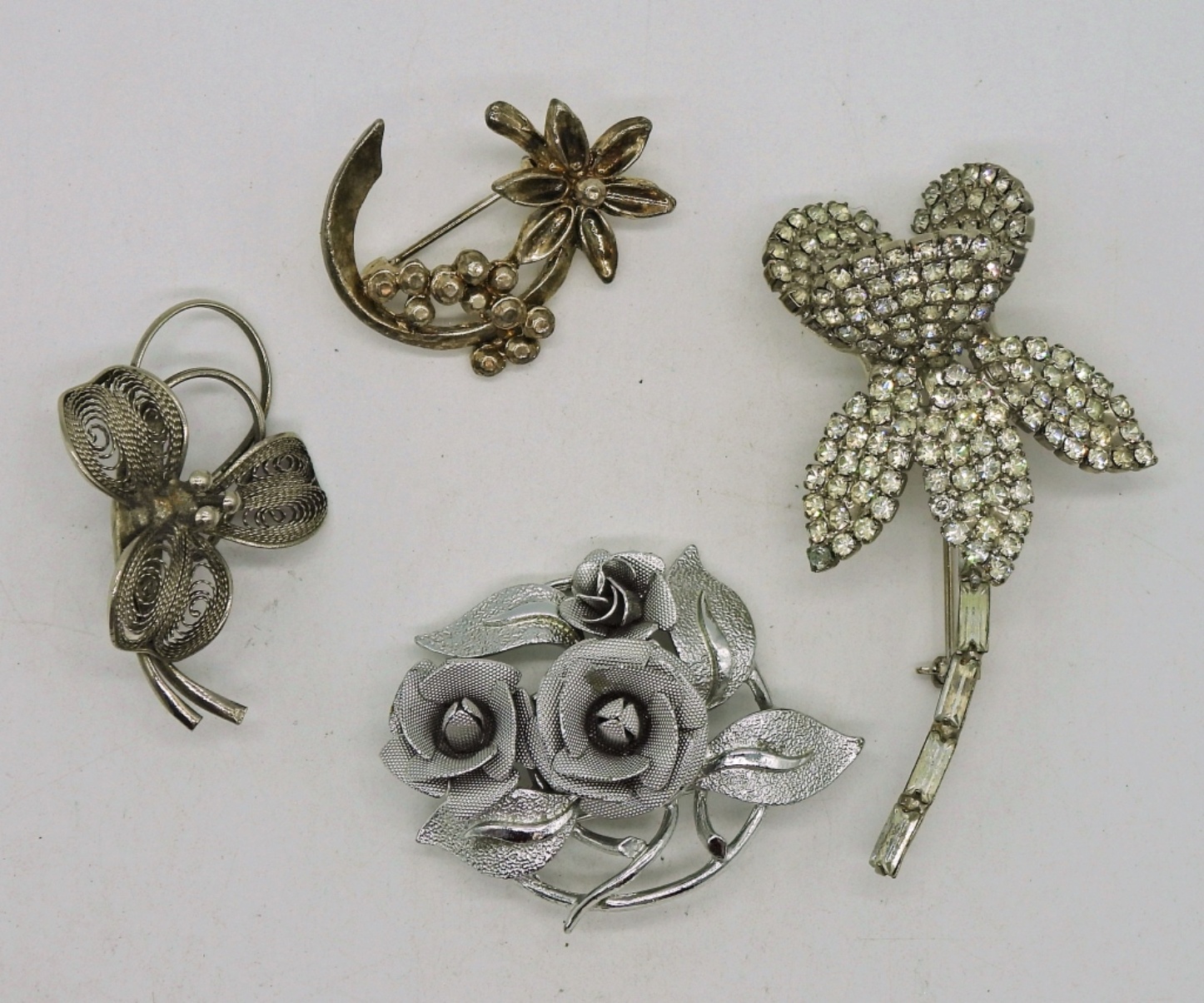 Four SIlver Tone and Rhinestone Brooches.