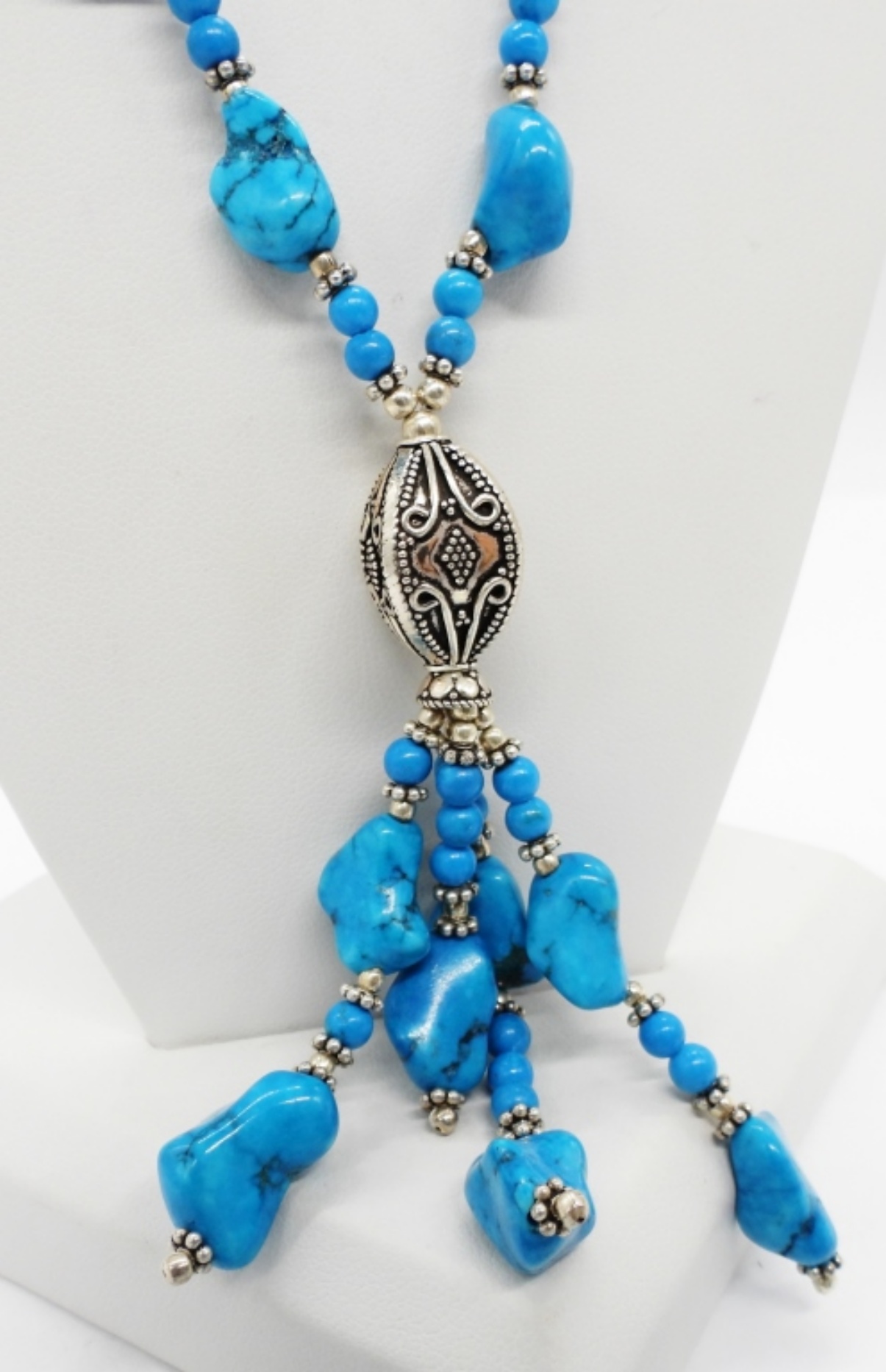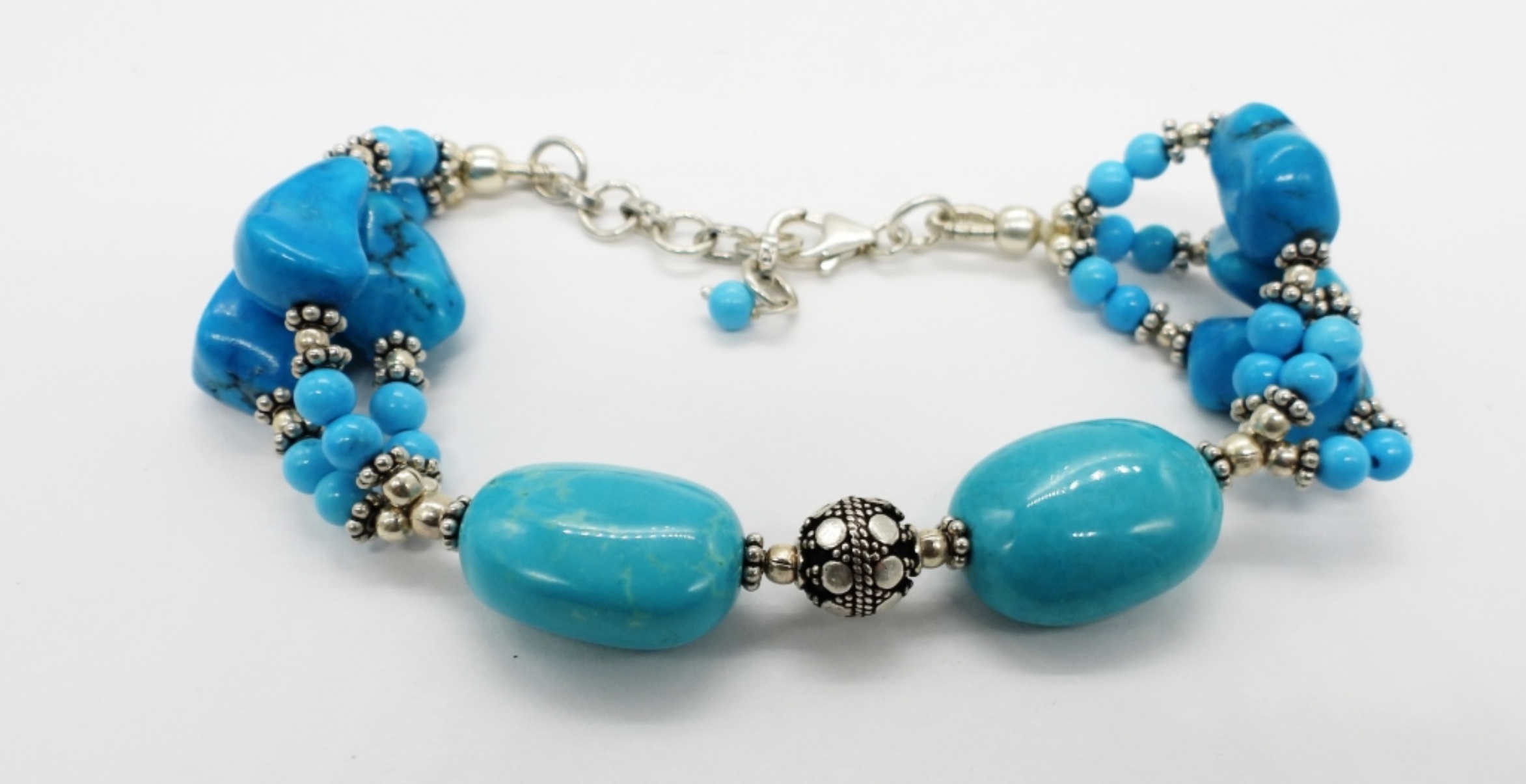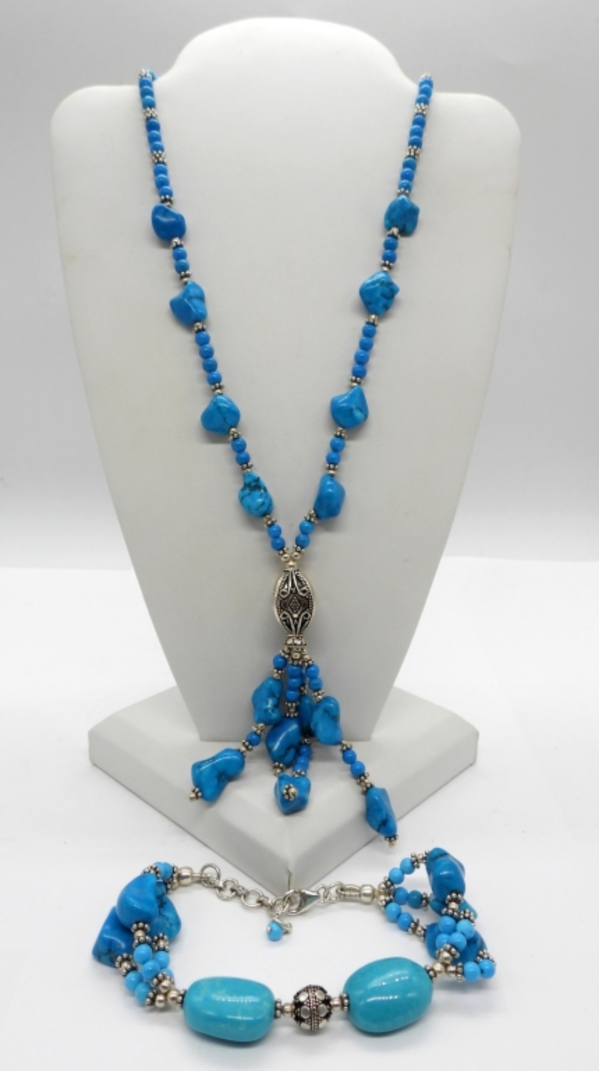 Matching Turquoise Necklace and Bracelet with Sterling Clasps. Necklace is 16-19″ Adjustable. Bracelet is 7-8″ adjustable.