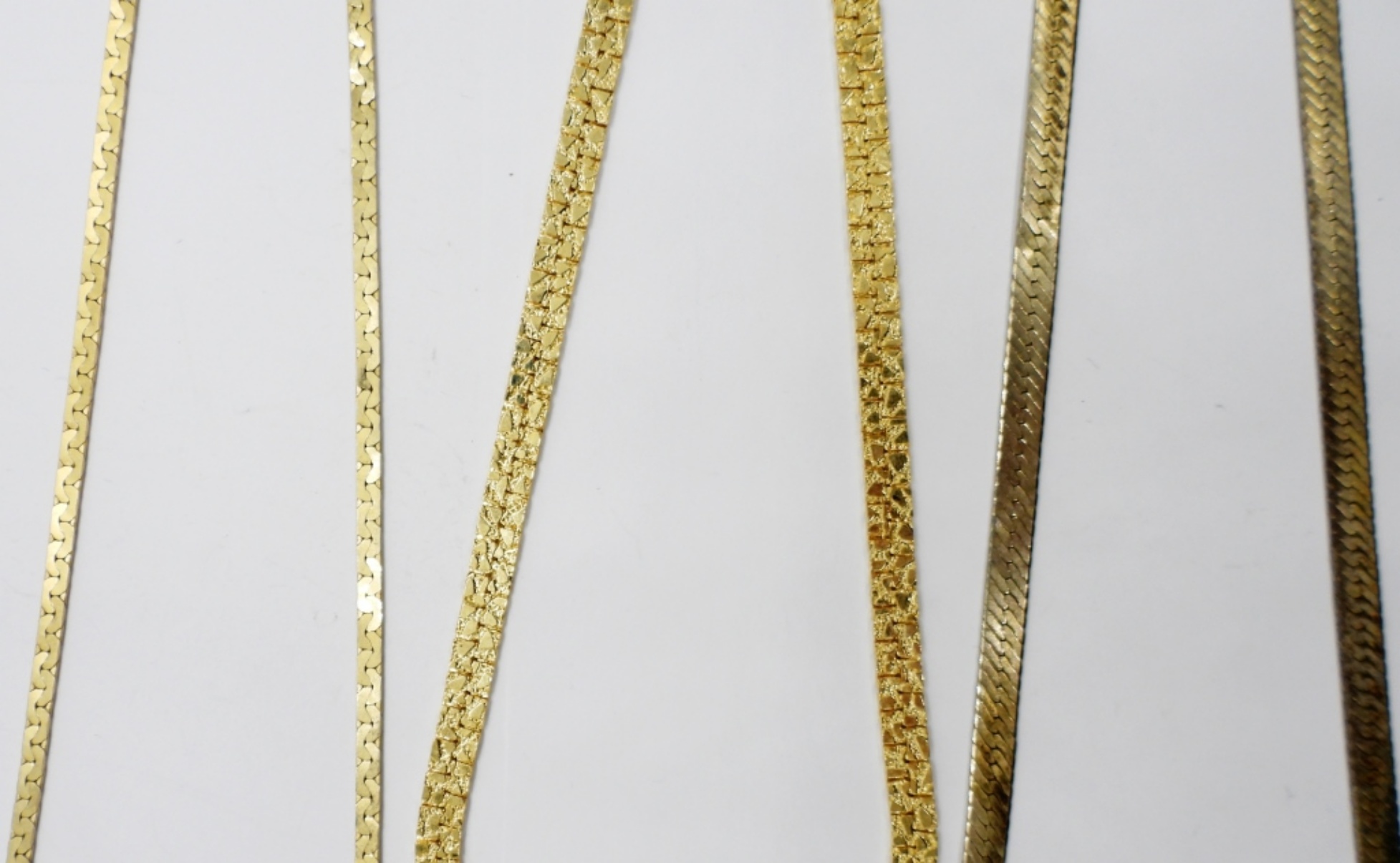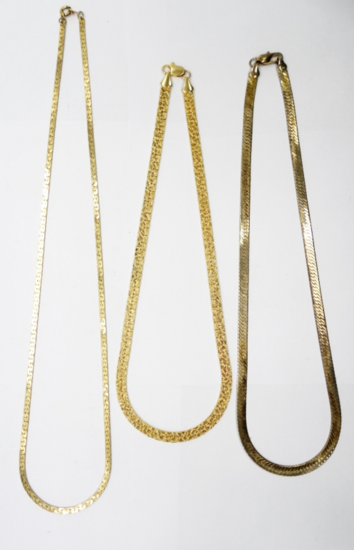 Three Styles of Gold Tone Chains. 18″, 20, 24″.