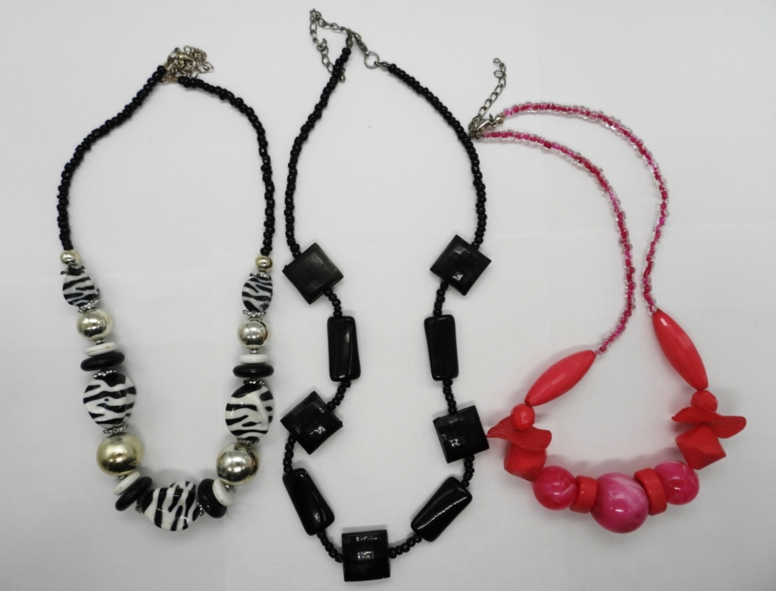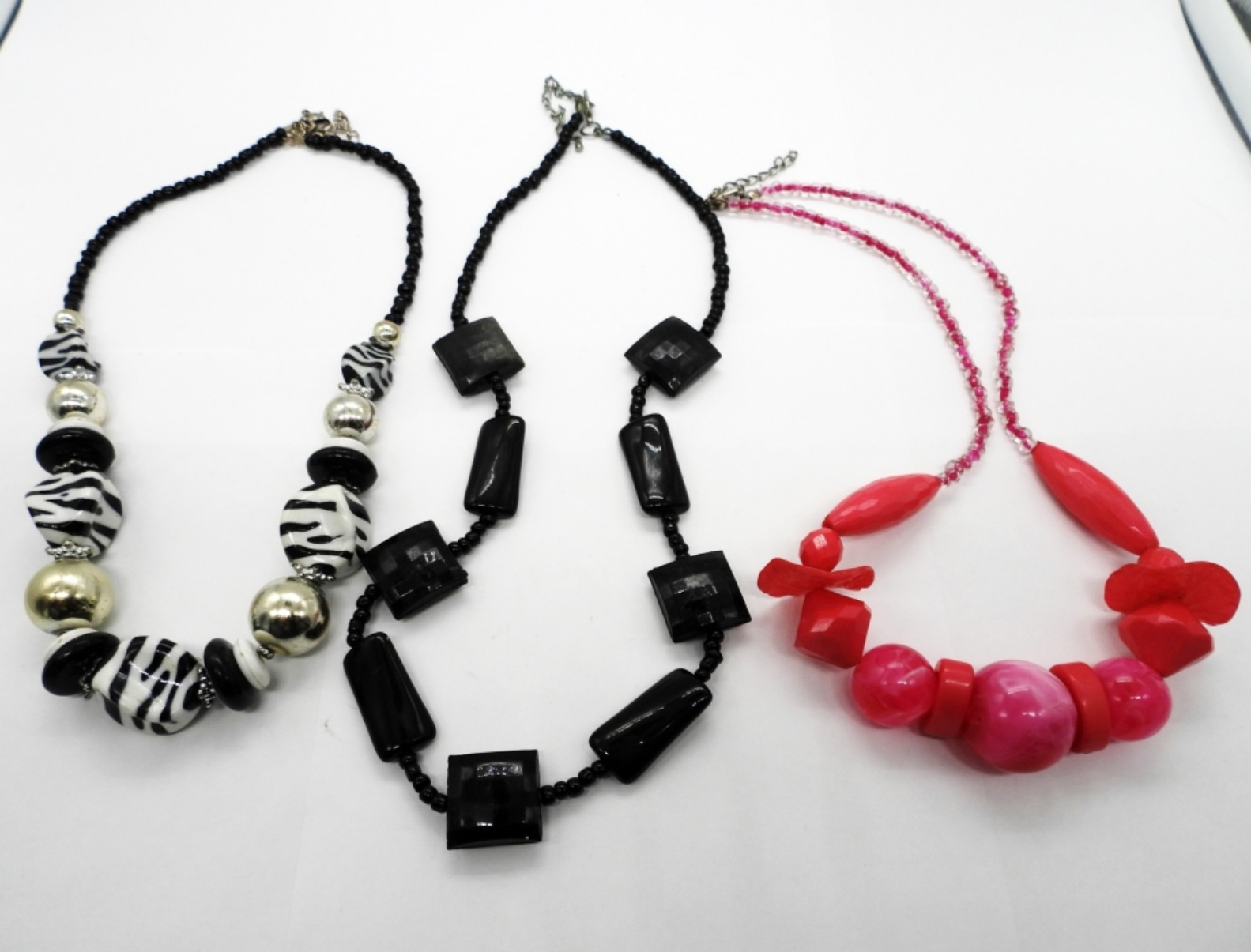 Fun & Colorful Vintage 1980’s Statement Necklaces. 21″, 21″, 24″ lengths.