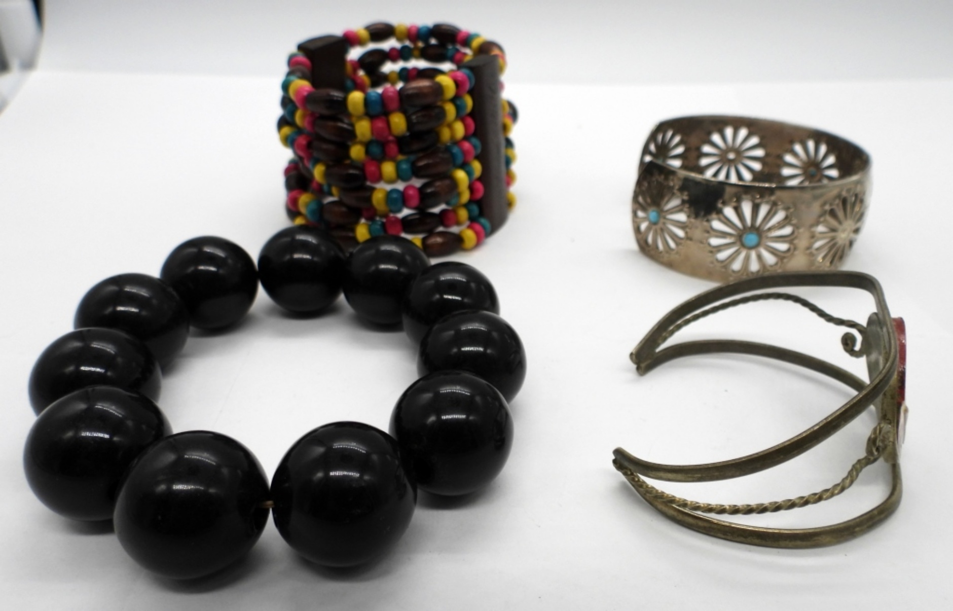 Four Fashion Bracelets, Two Silver Tone, Two Beaded.