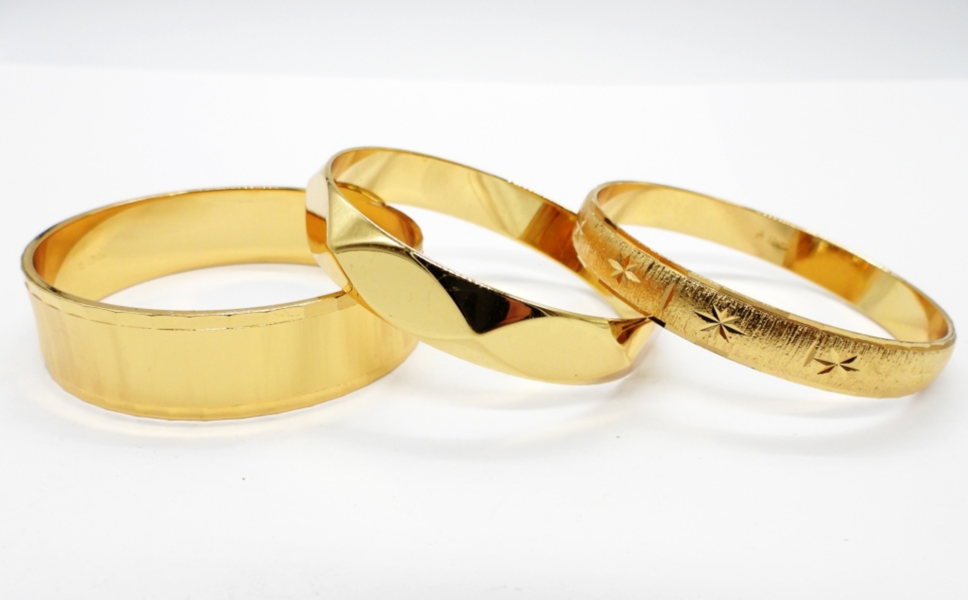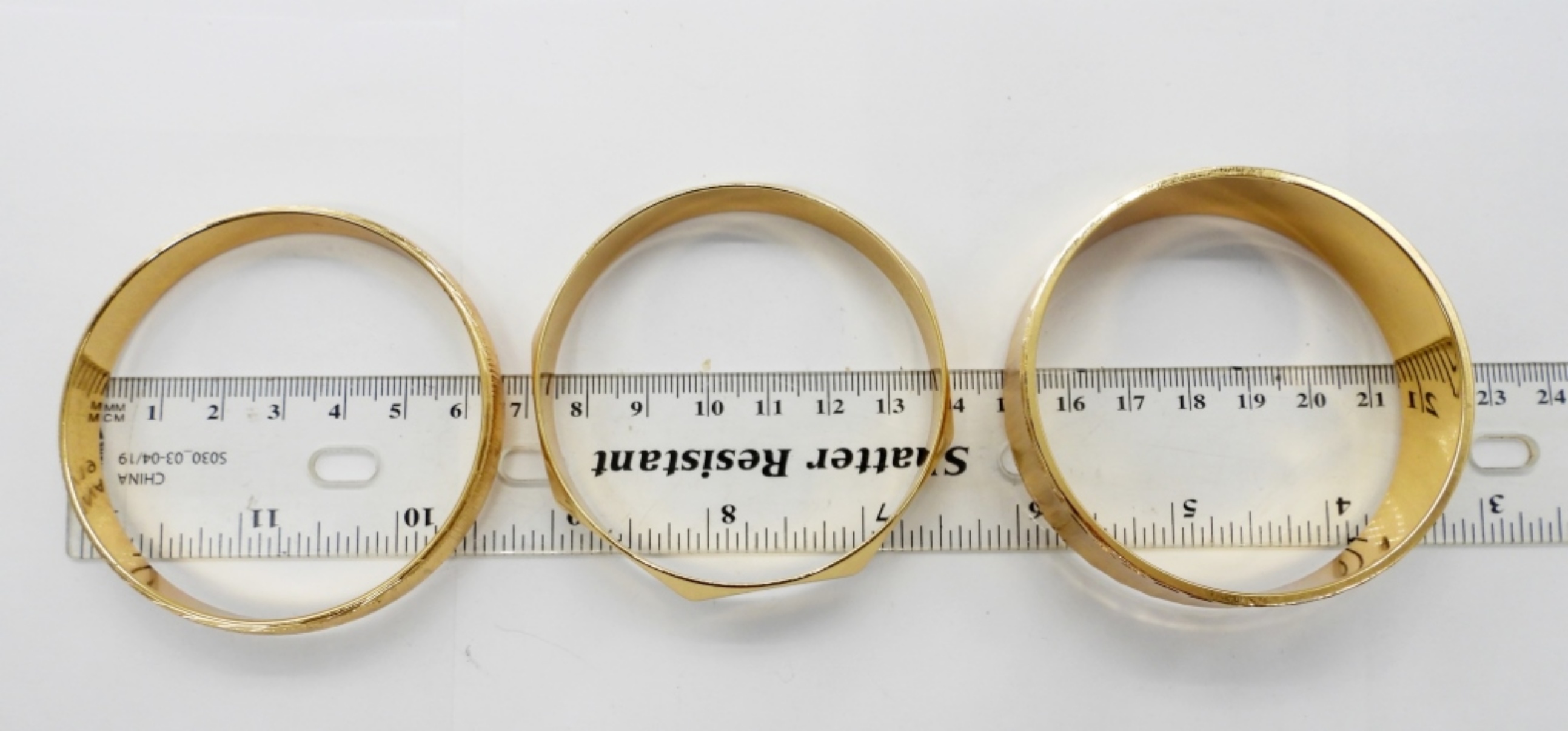 Three MONET Brand Gold Tone Bangle Bracelets, Very Shiny and Pretty! 7″
