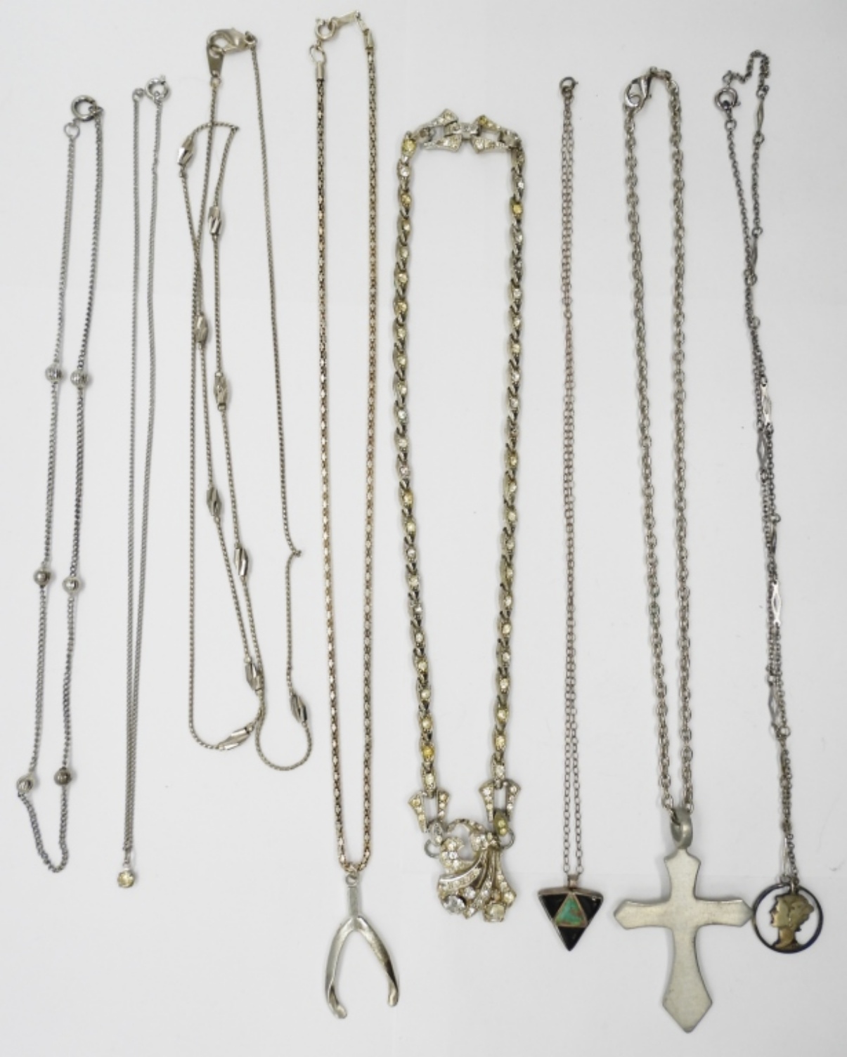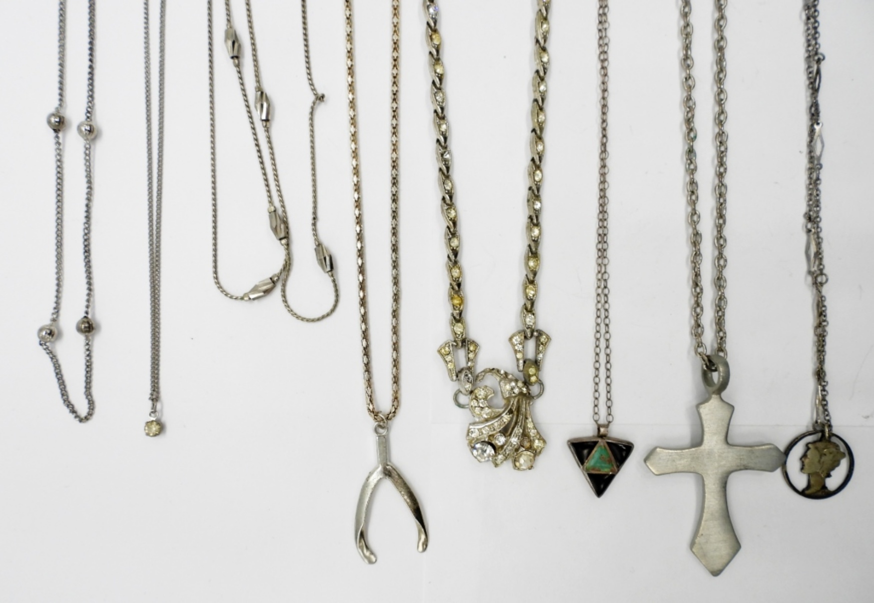 Vintage Rhinestone Necklace, Cross, Wishbone and More. Chain Lengths are 14″, 16″, 18″, 30″.