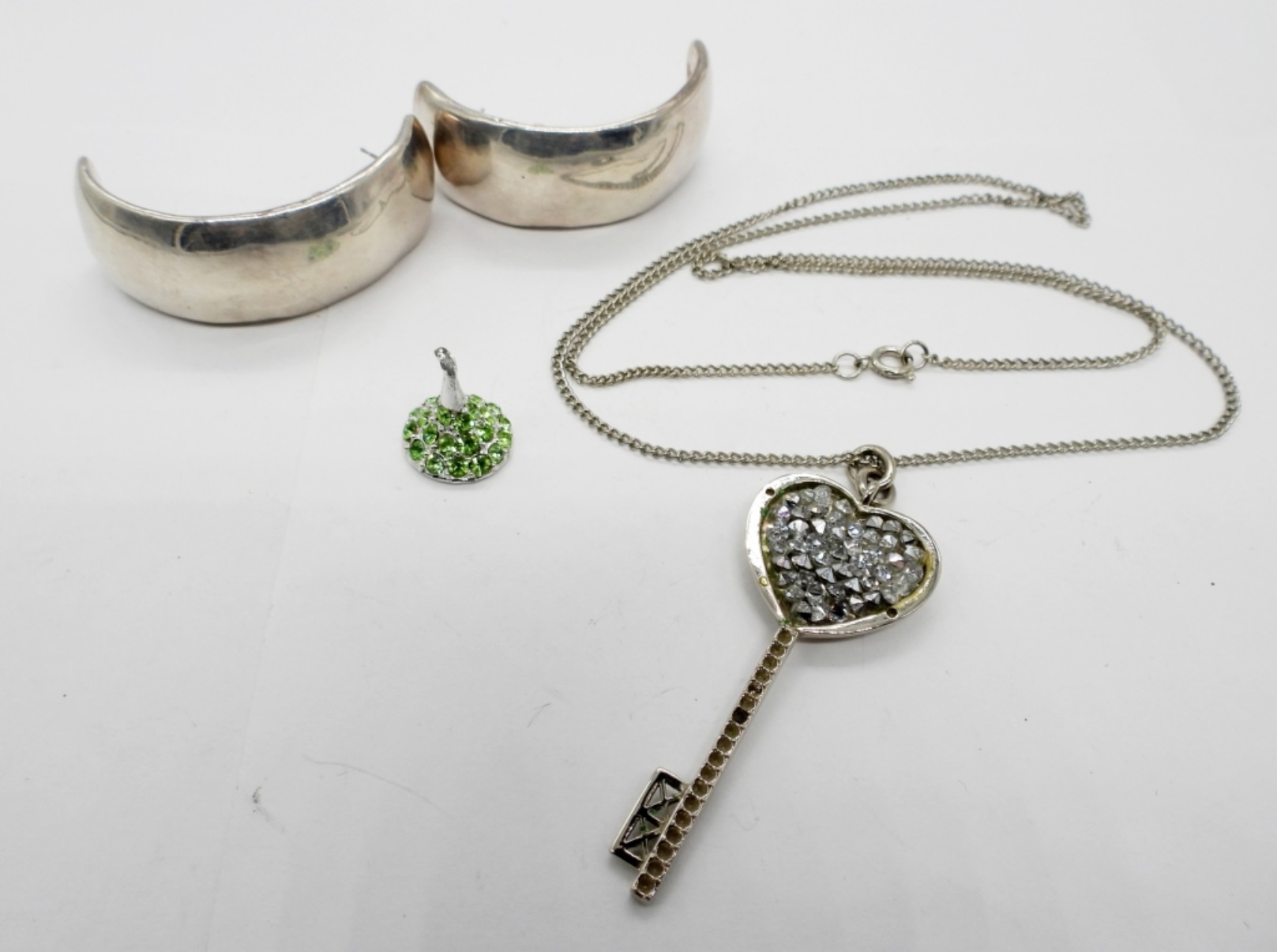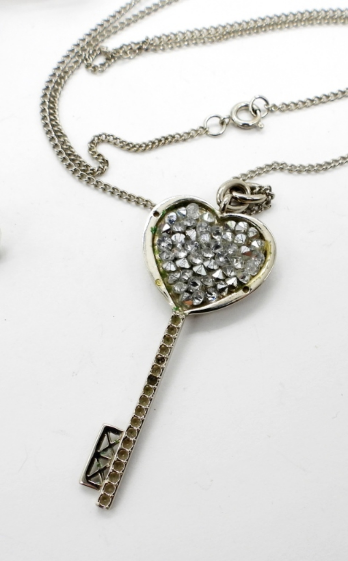 Silver Tone Swarovski Crystal Brand Heart Key Pendant with a lot of clear crystals on a 22″ chain. This piece looks like its missing something, may not be as whole as it was when it was New. Super Cute Hershey Kiss