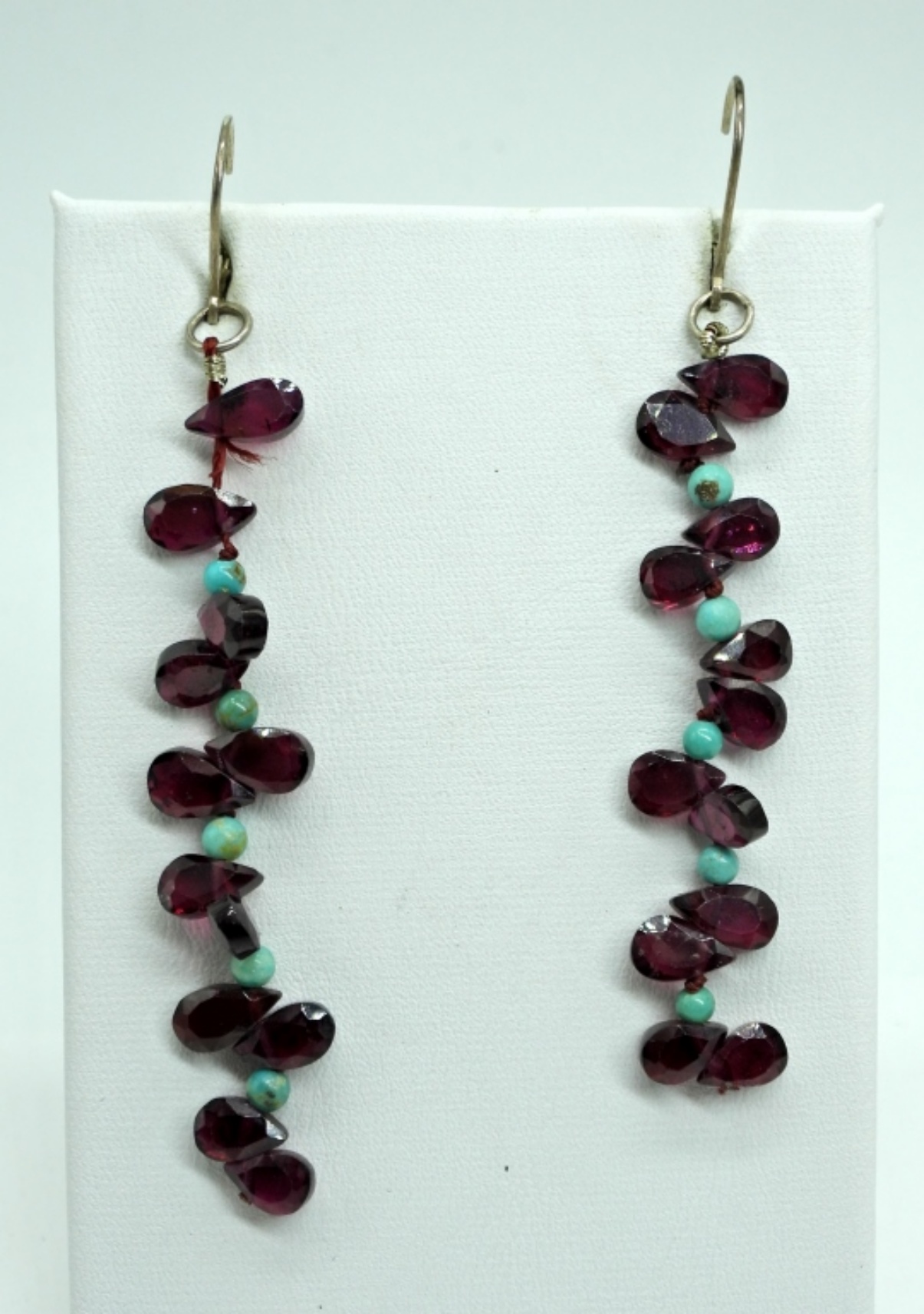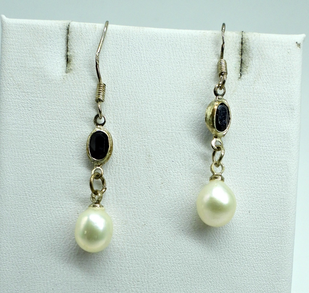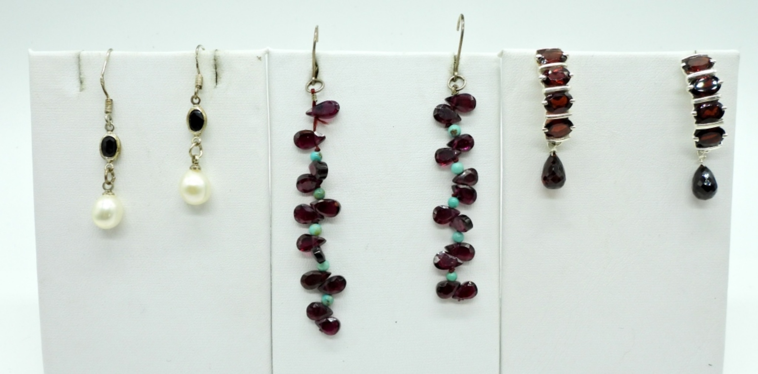 Three Pair of Garnet & Pearl Earrings in Silver Tone.