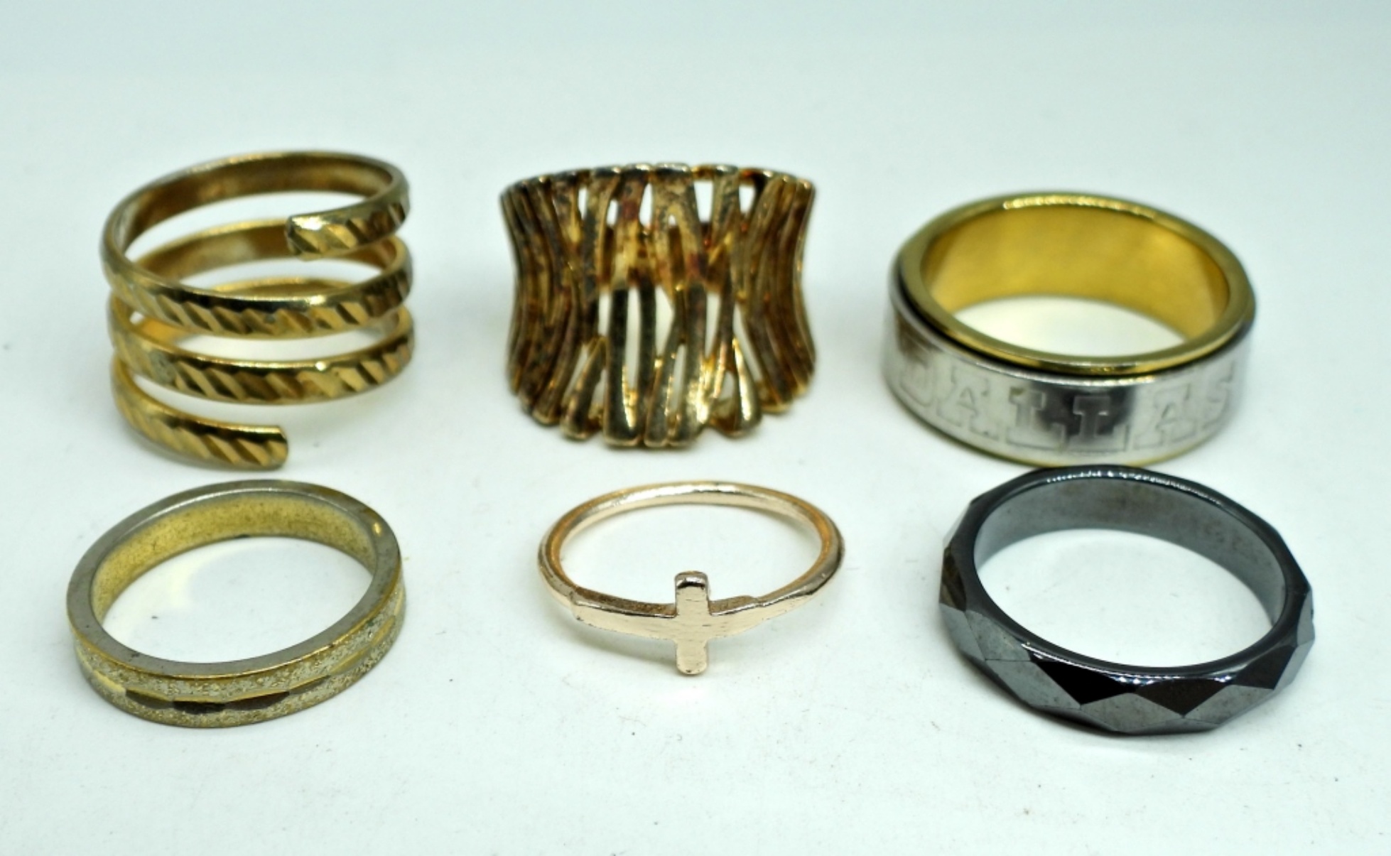 Six Rings in Gold, Silver, Rose Gold & Black Tone. Sizes 3.5, 5, 6, 7, 9.