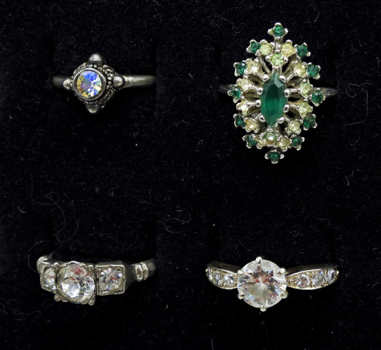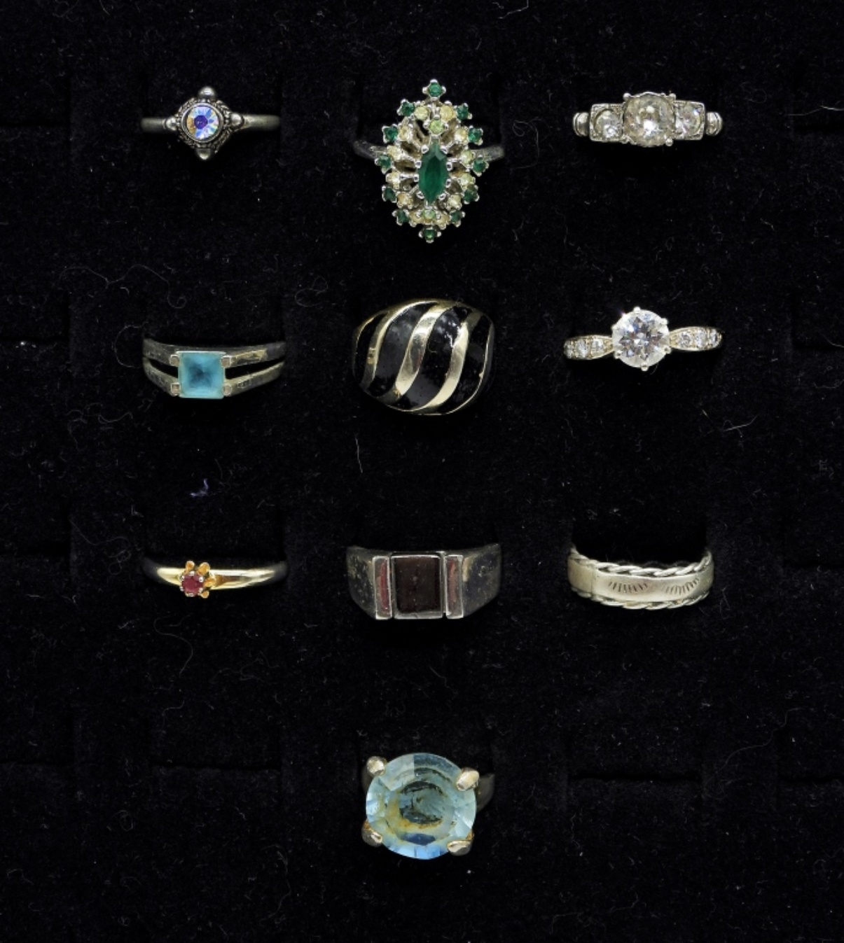 Ten Gold and Silver Tone Fashion Gemstone Rings. Sizes 6, 6.5, 7, 7.5, 8, 8.5
